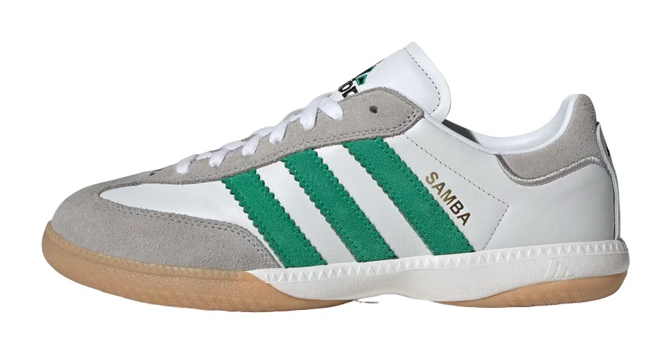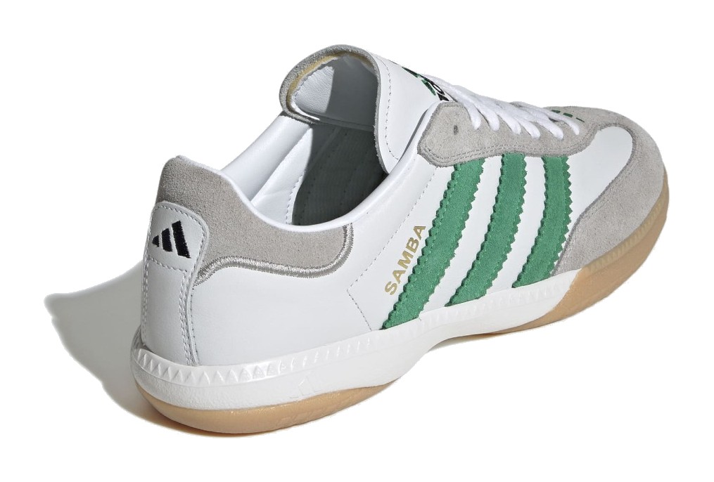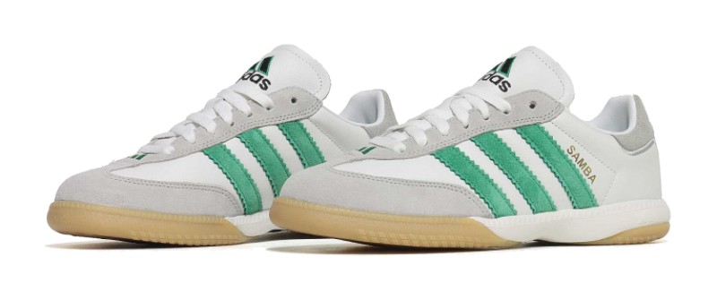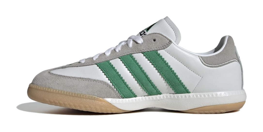 This is a millennium update to the iconic silhouette, featuring a sleek Cloud White leather upper and the signature suede T-toe panel. The defining characteristic is the Green color used for the classic Three-Stripes, providing a bold contrast. Unlike the OG, the Samba MN includes an EVA midsole and a Torsion Bar for a more cushioned and stable ride, while still retaining the heritage look with a durable Gum rubber outsole.