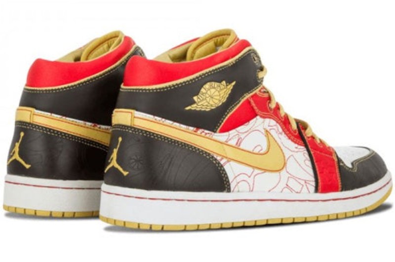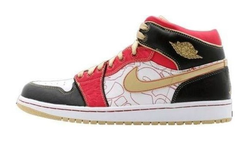 This highly exclusive sneaker was part of the original "XQ" release in 2007, a limited-edition launch in China. The design is maximalist and intricate, featuring a blend of premium materials and decorative details. The colorway combines a White base with Black, Sport Red, and Gold Dust accents, reminiscent of traditional Chinese art and colors. Key features include an embossed geometric pattern on the mid-panel and toe box, premium nubuck and leather, and Chinese-inspired graphics used on the insoles and packaging. The vibrant red and gold highlights provide a striking contrast to the darker panels.
