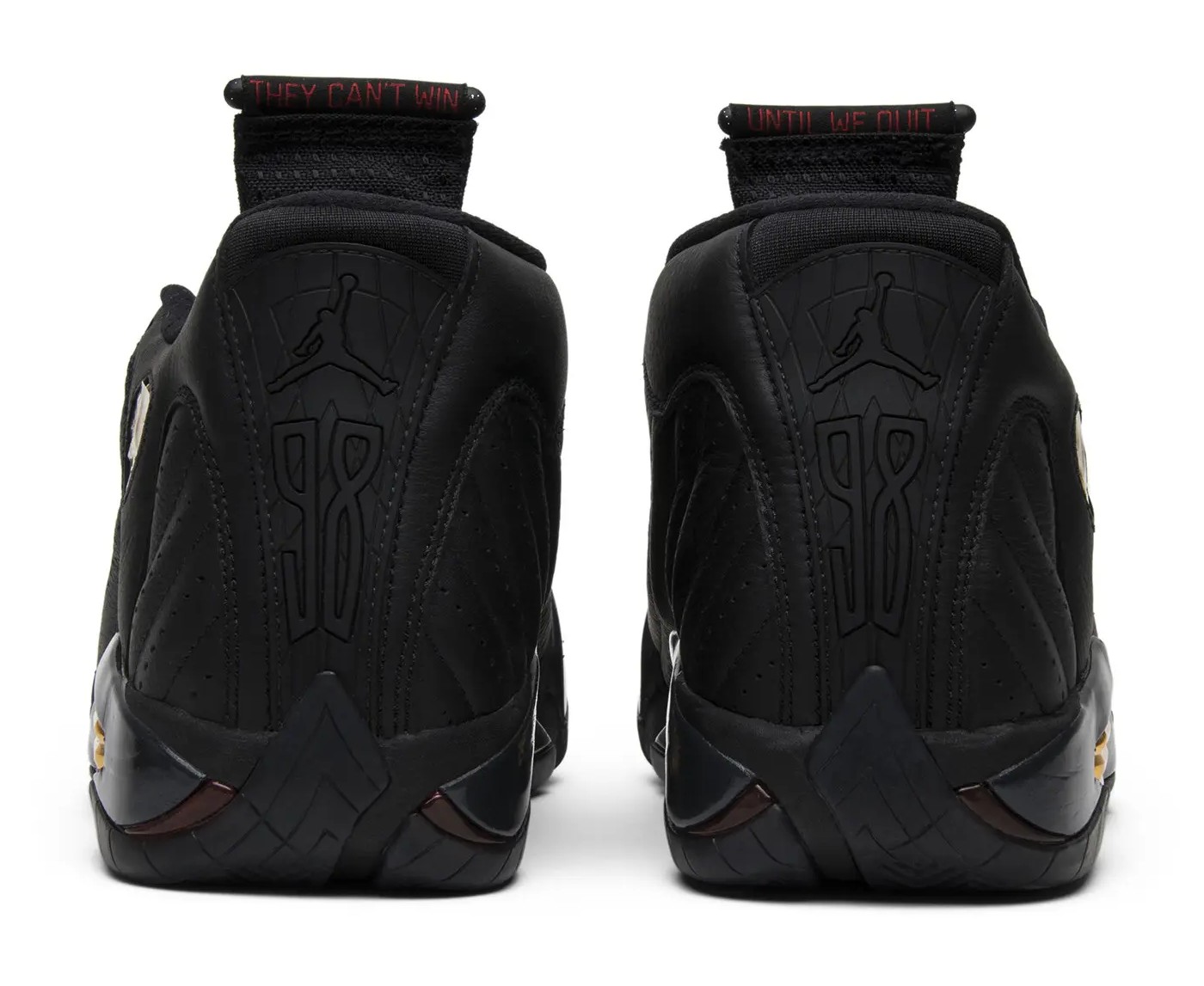 This specific shoe was part of the 2017 Defining Moments Pack, which celebrated the 20th anniversary of Michael Jordan's final championship in 1998. It takes the original "Last Shot" colorway (black/red) and updates it with prominent Metallic Gold accents to symbolize the championship. The black leather and durabuck upper is contrasted by gold on the midfoot plate and branding. Varsity Red accents appear on the heel and tongue. The customary "23" on the heel is replaced with "98," the year of Jordan's last title. The shoe was paired with the Air Jordan 13 Retro (in white/gold) to complete the pack.