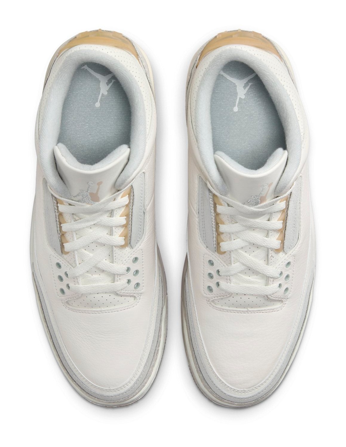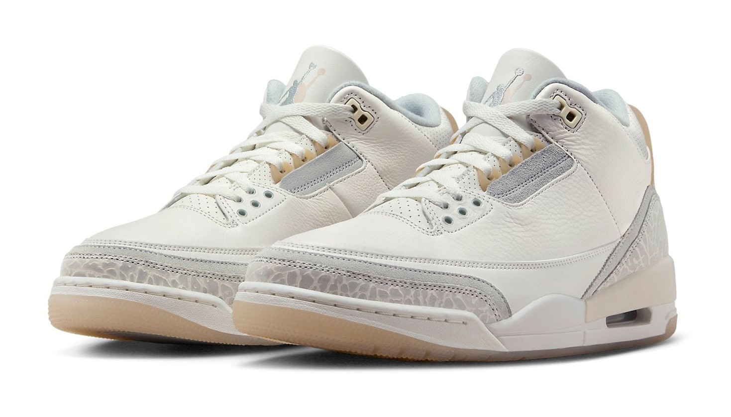 The Air Jordan 3 Retro Craft SE 'Ivory' offers a premium, deconstructed take on the classic silhouette. The upper is mainly constructed from smooth Ivory tumbled leather, complemented by Grey Mist suede overlays that replace the traditional elephant print panels on the mudguard and heel. This "Craft" edition features special detailing, including a translucent heel tab that houses both the Jumpman logo and the classic "Nike Air" logo. The midsole is Ivory with a Cream-colored accent around the Air unit window, and the outsole is semi-translucent rubber, completing the refined, neutral-toned look.