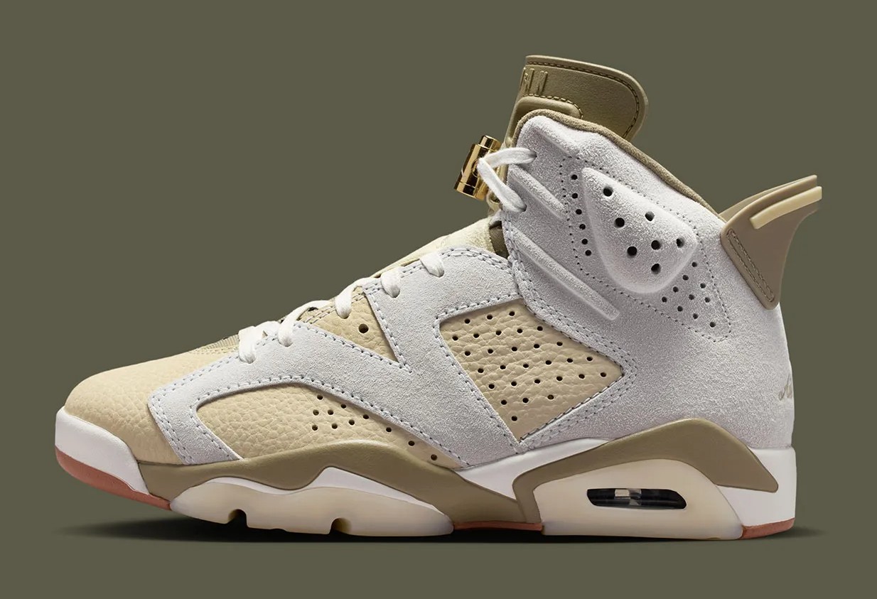 | Credits | https://sneakernews.com/2026/03/11/air-jordan-6-sail-neutral-olive-fir-light-khaki-ir2009-133/ |