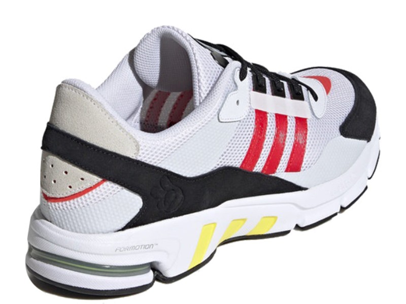 The Adidas Disney x EQT Sn (FX7805) in the 'White Red Yellow' colorway is a limited edition running-inspired sneaker that is part of a special collaboration with Disney. The shoe features a vibrant color scheme with a base of White complemented by pops of Red and Yellow and details in Black.