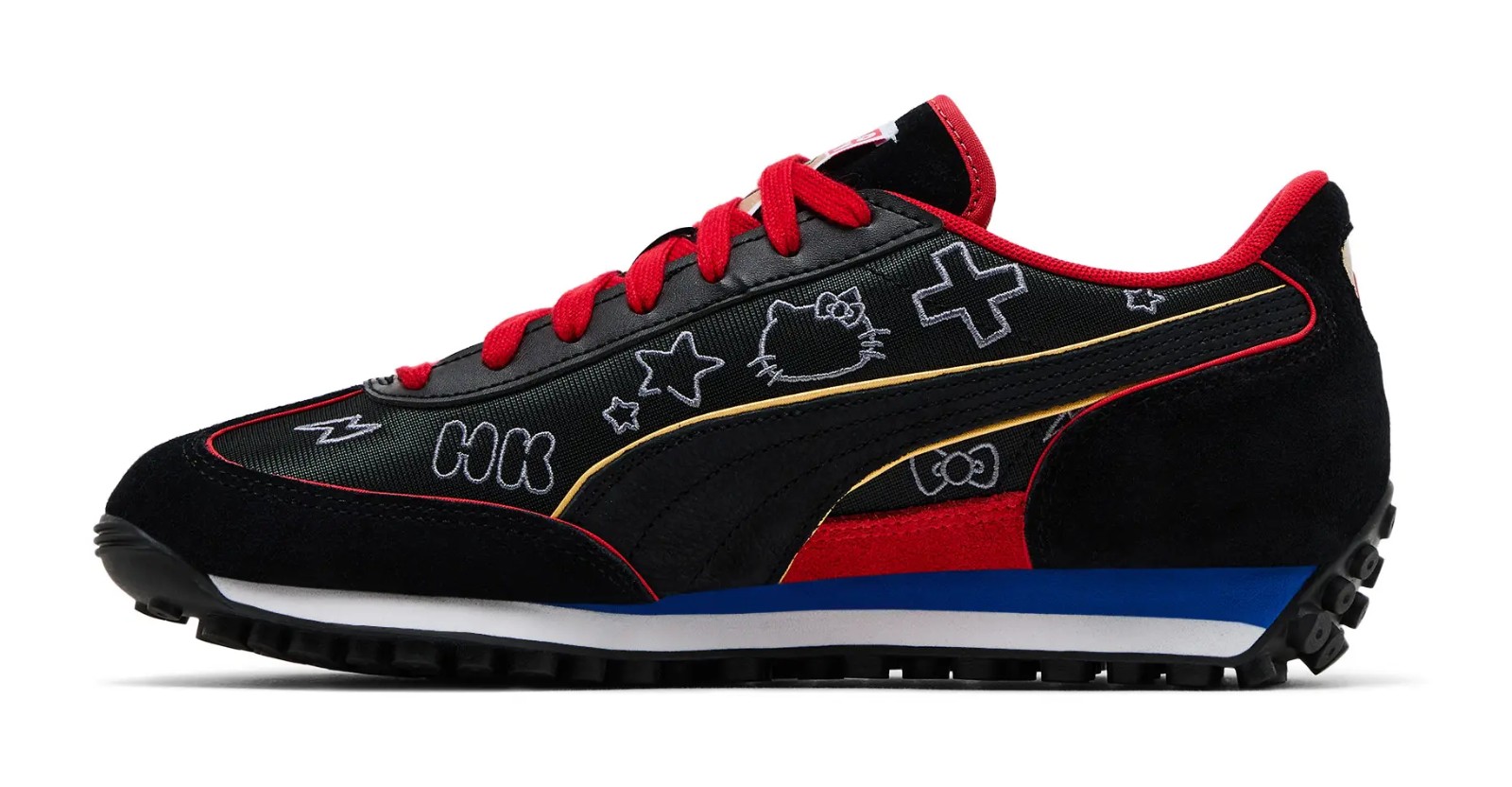 | Colorway | Puma Black / For All Time Red / Mountain Blue |