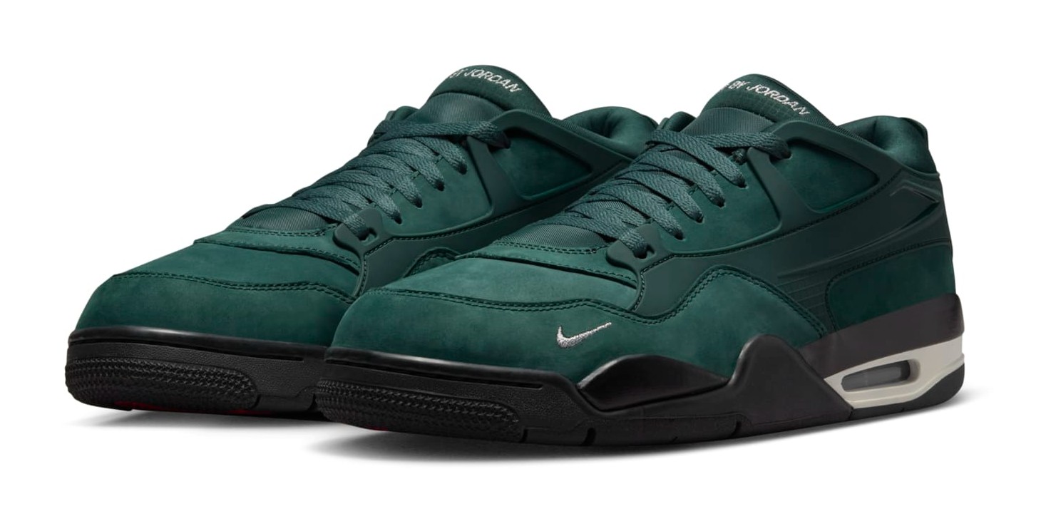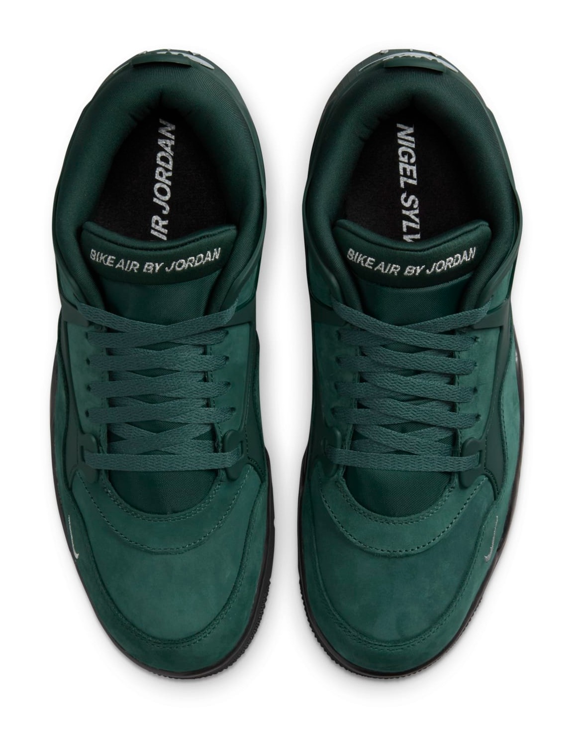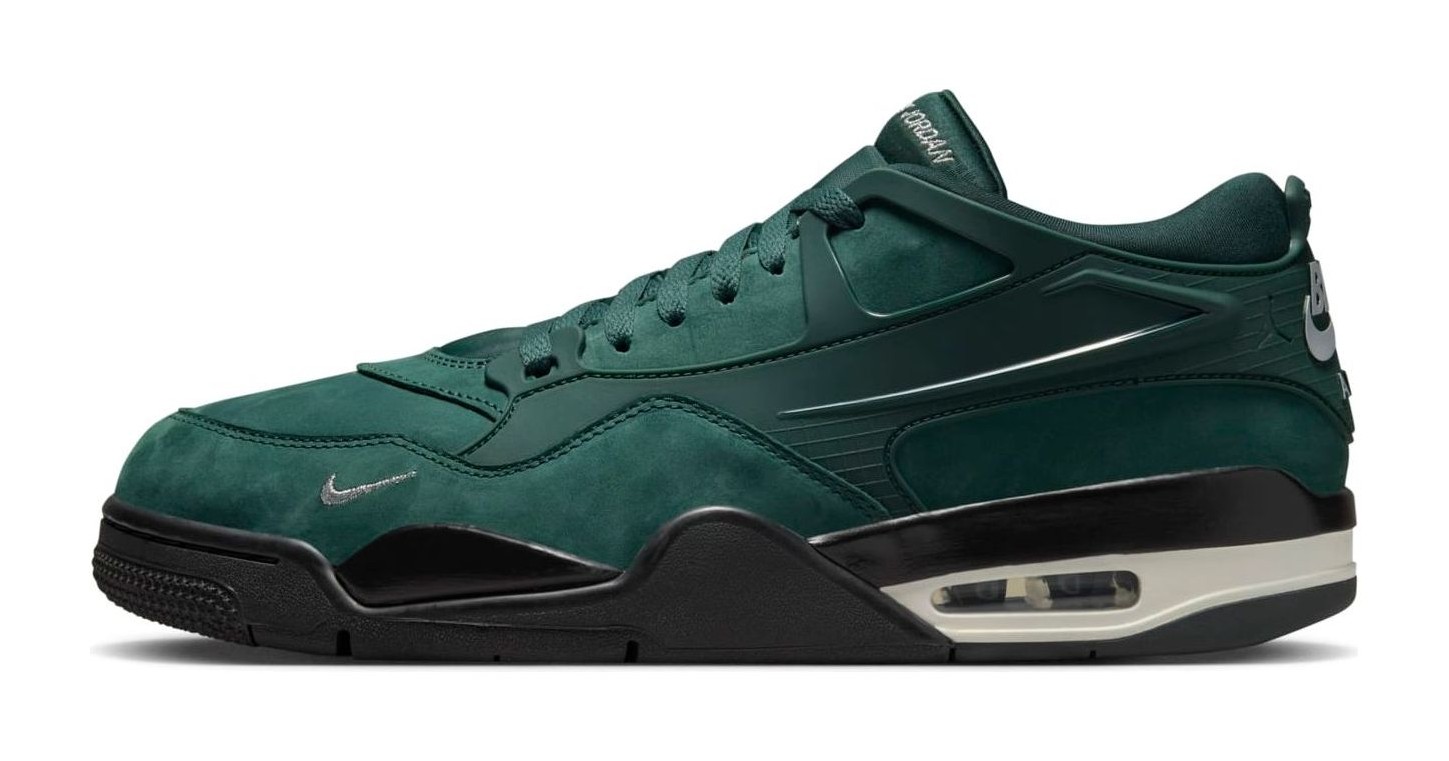 This shoe is the debut colorway from the collaboration with professional BMX rider Nigel Sylvester on the redesigned Air Jordan 4 RM silhouette. The sneaker's colorway is directly inspired by the green fence surrounding his grandmother's driveway, a significant place in his childhood where he learned to ride. It features a Pro Green velvety suede upper with a flexible black TPU cage and Metallic Platinum accents, including a mini-Swoosh embroidered on the forefoot. The shoe also features special co-branded details like "Bike Air by Jordan" on the tongue and a "BIKE AIR" embossed logo on the heel, sitting atop a Black and Sail midsole with a visible Air unit.