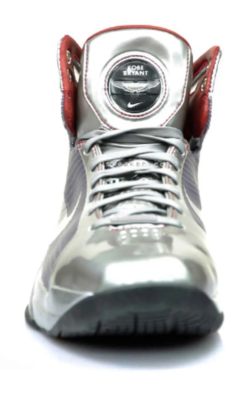 It pays tribute to the famous Nike commercial where Kobe Bryant jumped over a speeding Aston Martin car, featuring details like a red leather sockliner to mimic the car's interior.