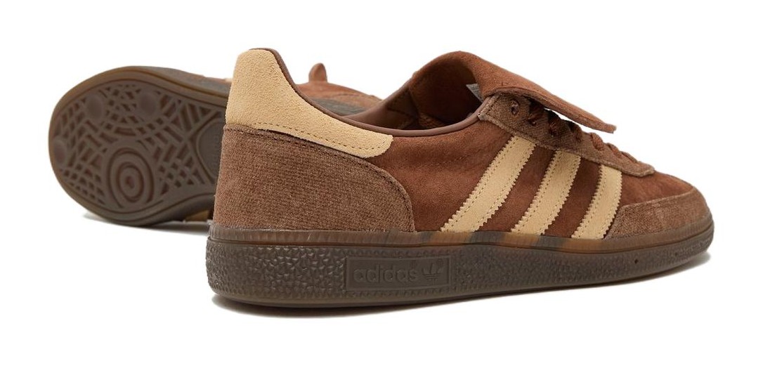 This size? exclusive model features a rich, earthy Brown suede upper, complemented by tonal accents and a textile T-toe and 3-Stripes. The design is inspired by the aesthetics of pre-millennial football boots, evident in the extended, fold-over tongue and rugged materials. The shoe is grounded by a classic Gum rubber outsole, which enhances the retro aesthetic and provides durable traction. The combination of the deep brown suede and the gum sole creates a rugged, vintage look perfect for terrace and lifestyle wear.