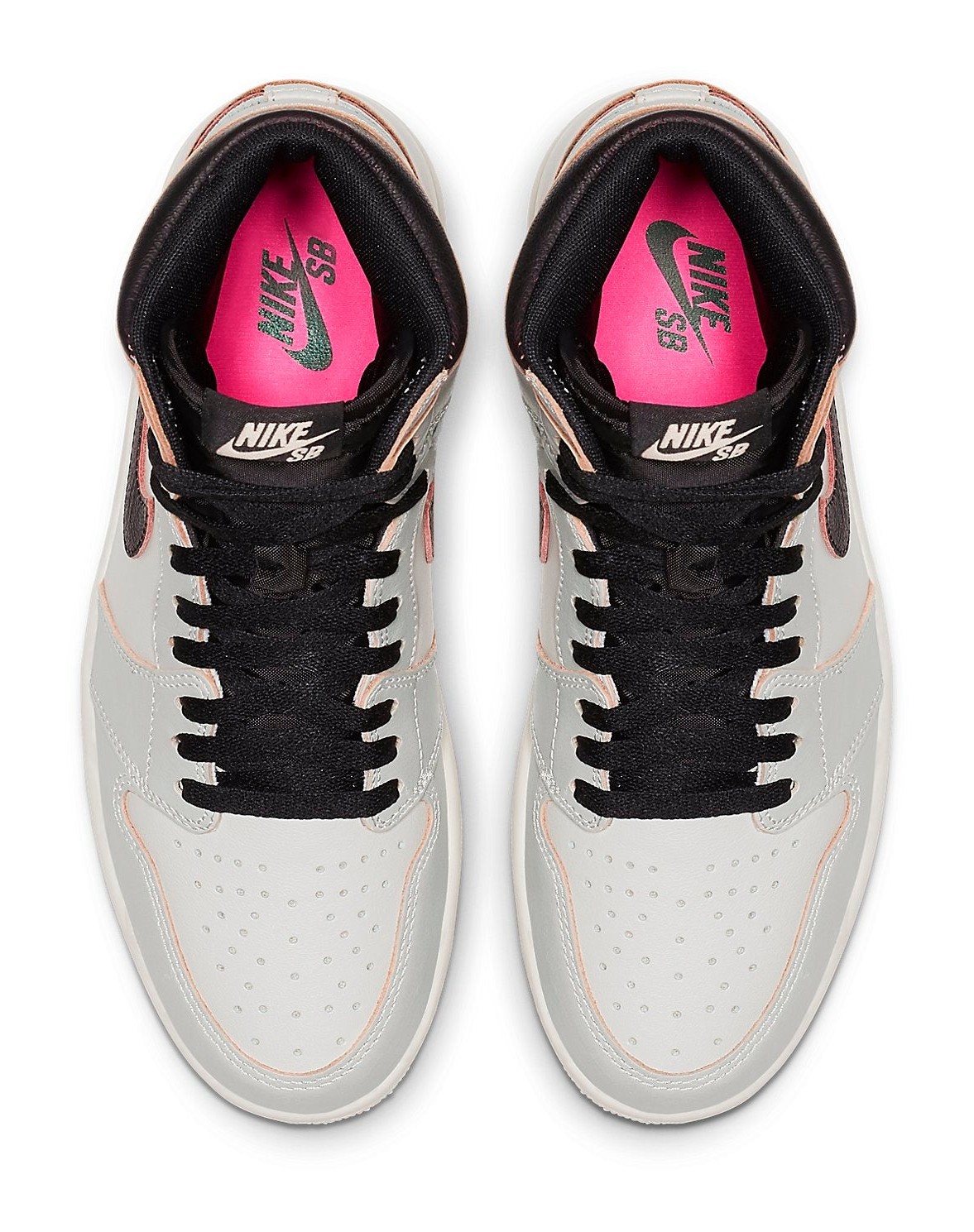 This model is part of a pack representing the journey from NYC to Paris, where the paint on the upper is designed to wear away over time (especially through skating). The initial Light Bone (greyish-white) and Black color scheme will wear away to reveal bright colors underneath, specifically Hyper Pink and Crimson Tint on the ankle collar and toe box, effectively transitioning from the New York color palette to the Paris color palette.