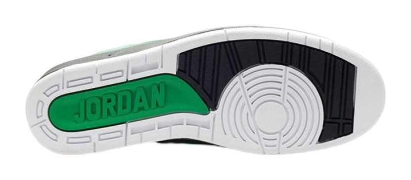 The Air Jordan 2 Retro QF "Candy Pack Green" was one of three monochromatic sneakers released as part of the "Candy Pack" in 2010. The shoe features a vibrant, uniform Classic Green color across the entire upper, constructed from a mix of smooth leather and the signature faux-lizard skin texture unique to the Air Jordan 2. Black details provide contrast on the piping, heel counter, laces, and the Air-infused midsole. The iconic "Wings" logo on the tongue is also black. A solid white section on the outsole completes the bold, simple, and color-drenched look.