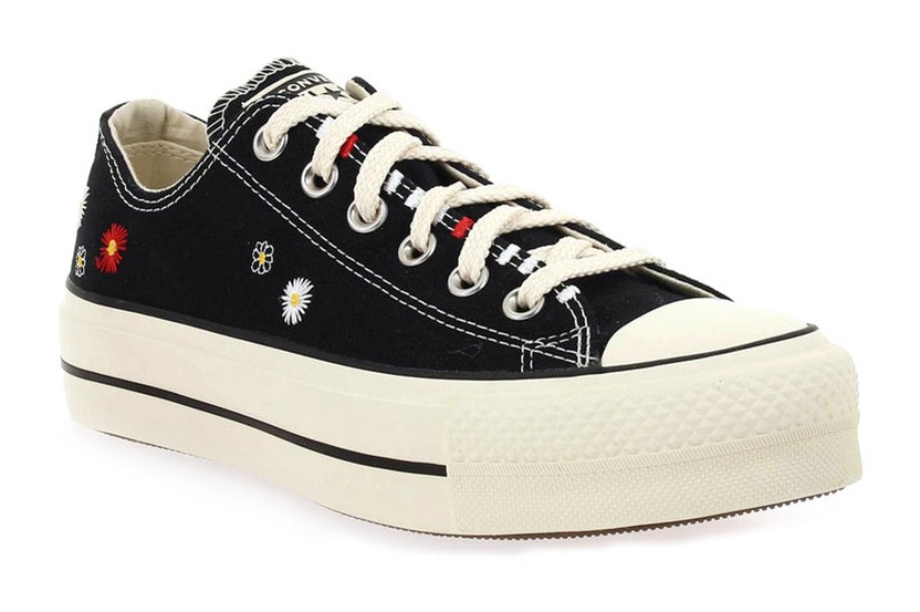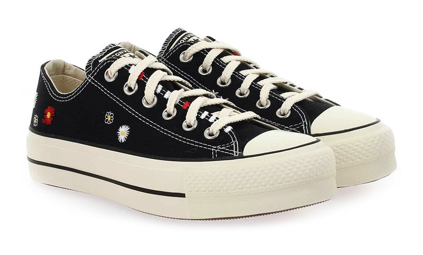 Converse Chuck Taylor All Star Lift Platform Low Top "Embroidered Flowers - Black"