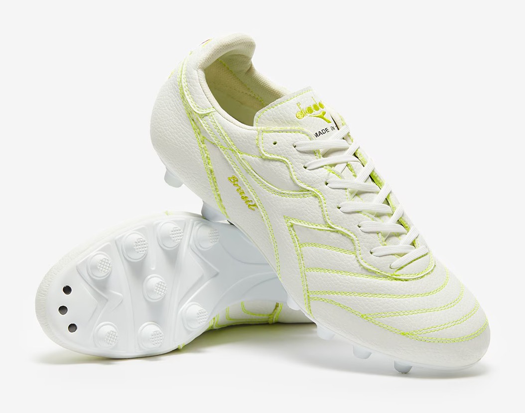 Celebrating the next 40 years of Diadora this boot has a green look because the thread isn't dyed to help achieve its fully carbon neutral status.