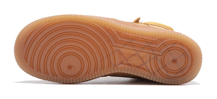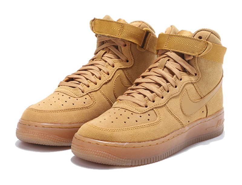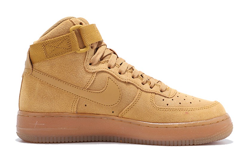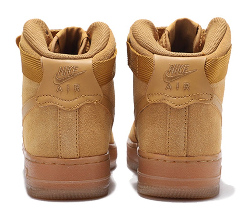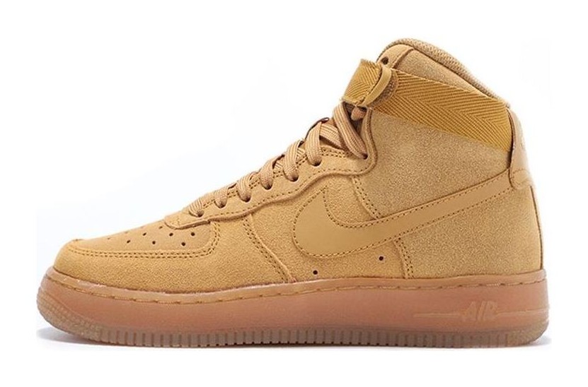 This is the Grade School version of the classic "Wheat" colorway, drawing inspiration from traditional work boots. The high-top upper is constructed primarily from soft, fuzzy Wheat-colored suede, giving it a premium, textural feel. It features a matching ankle strap and sits atop a durable Gum Light Brown rubber outsole, perfectly completing the boot-like aesthetic. It includes the embedded Air-Sole unit for comfortable cushioning.