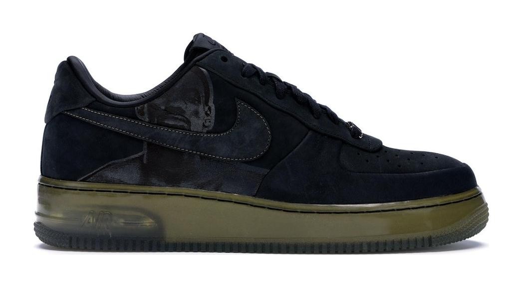 This sneaker, part of the "New Six" pack celebrating basketball players who wore the Air Force 1, honors LeBron James. It features a leather upper in an all-black colorway with accents of Metallic Gold.