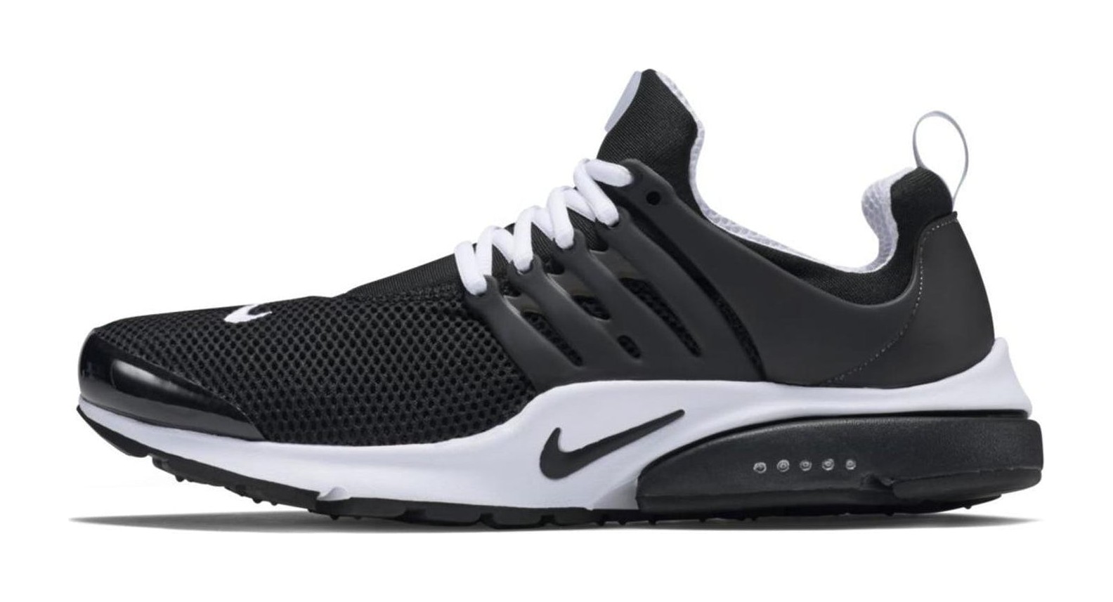 This special Quickstrike edition of the Air Presto features a perforated mesh upper for enhanced breathability, making it ideal for warmer weather. It comes in a simple, two-tone black and white colorway, with the mesh upper, semi-translucent lace cage, and heel counter all in black. A Phylon midsole provides cushioning, while the white inner lining and Swoosh offer a clean contrast to the primarily black upper.