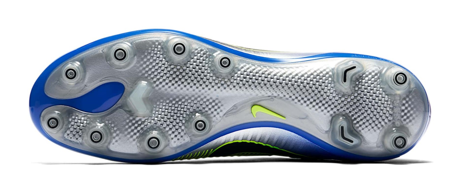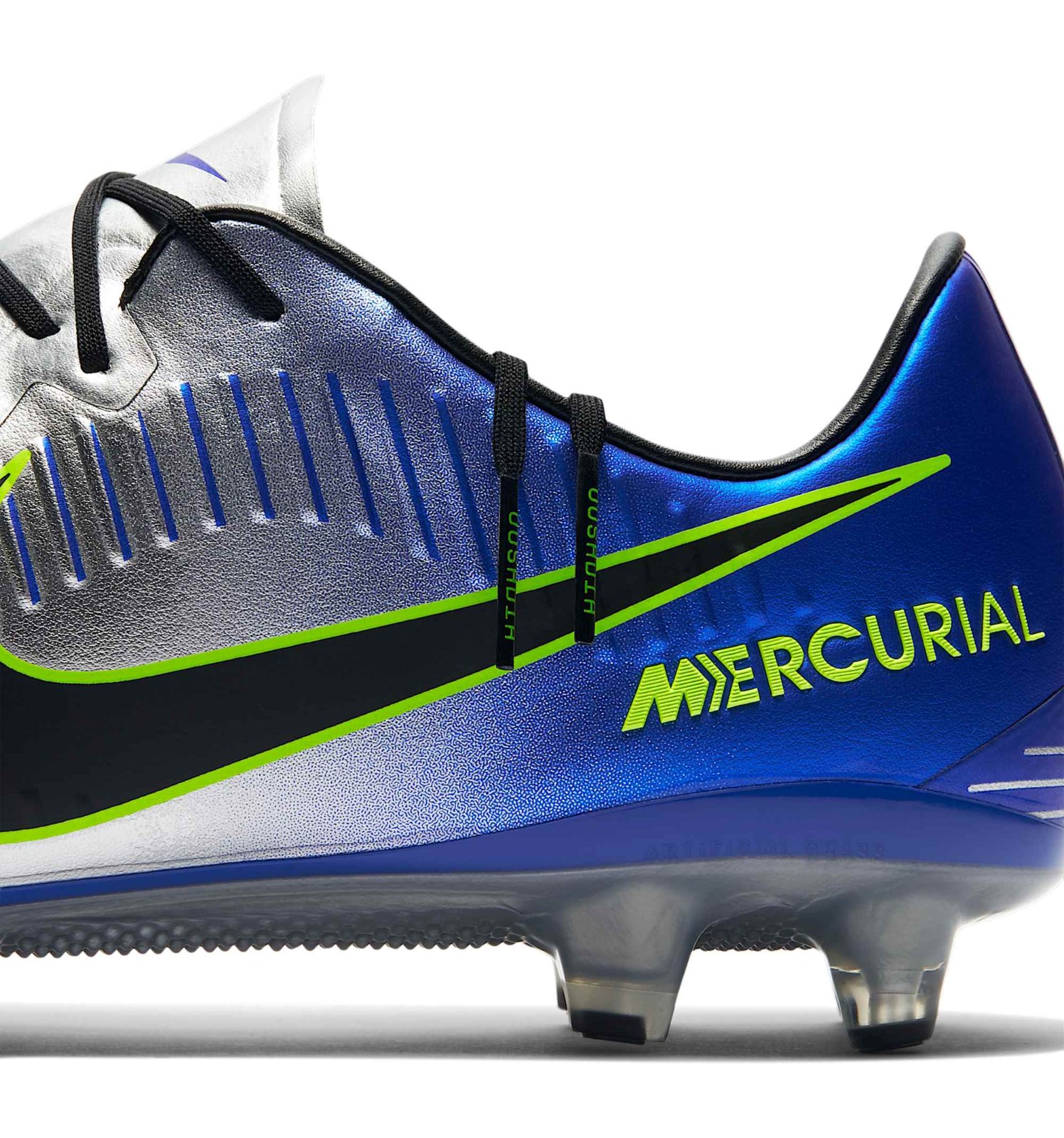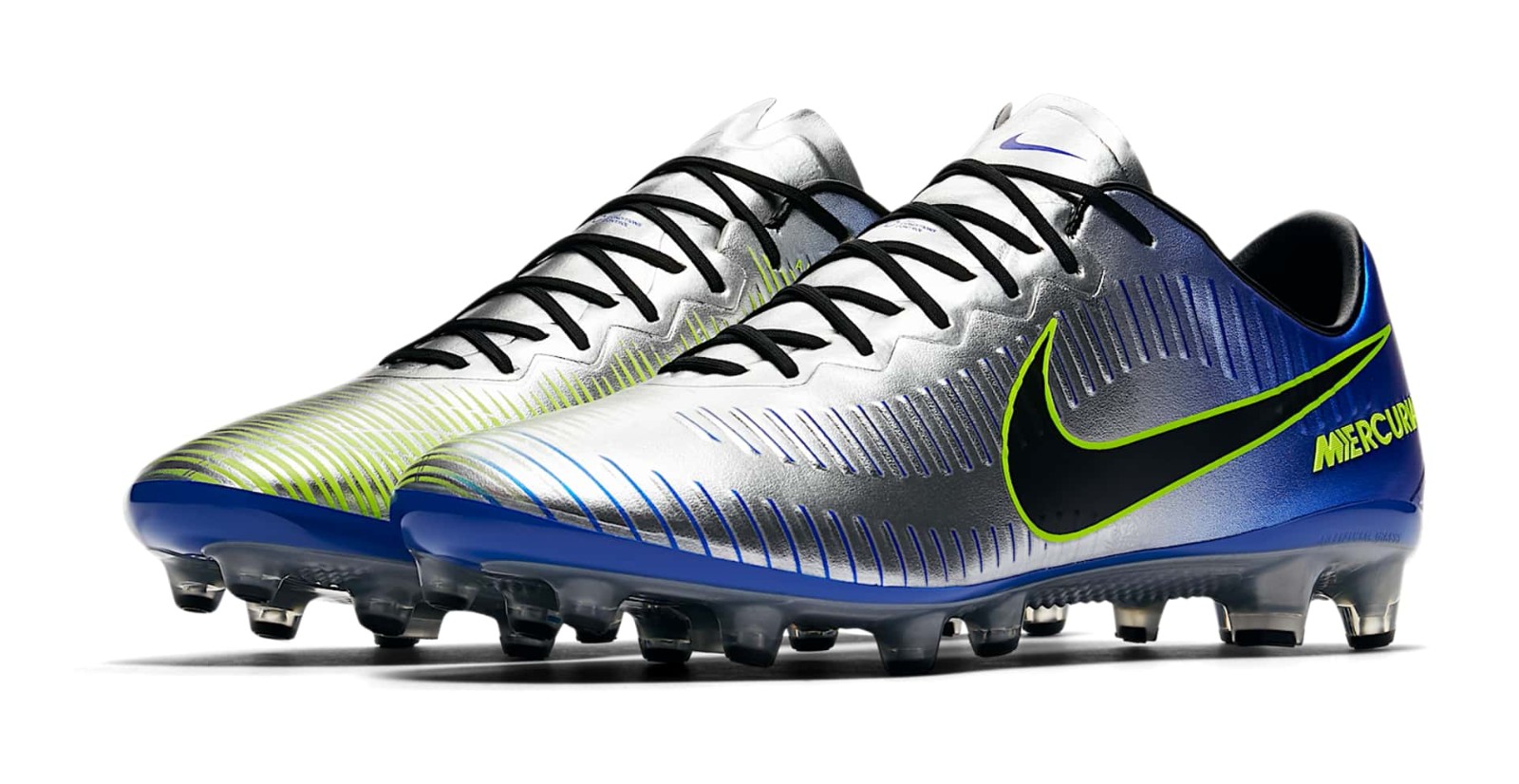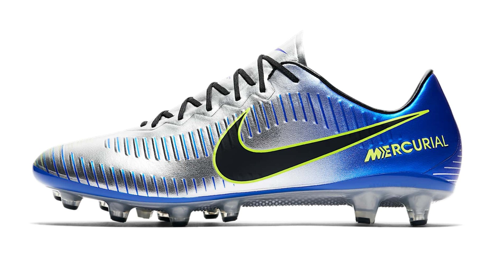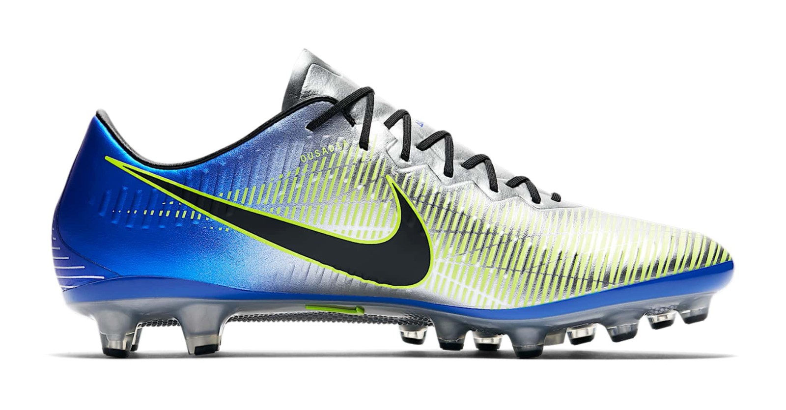 Inspired by the Mercurial worn by Ronaldo at the 1998 World Cup, the boots come with black brandings and 'Racer Blue' and 'Volt' details. Although based on the current Mercurial, the Nike Neymar boots have a different upper structure that's closely inspired by the 'waves' found on the 1998 model.