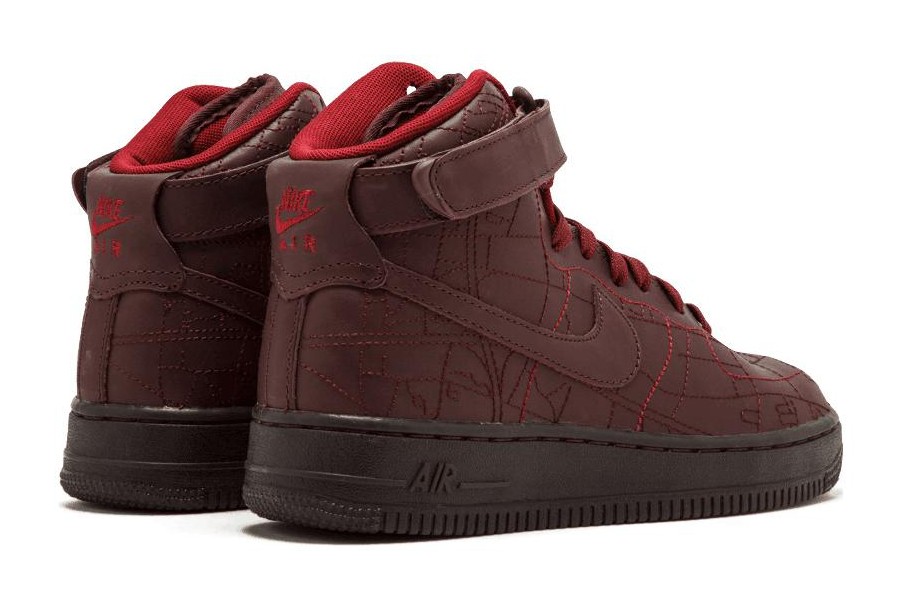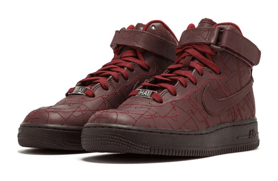This sneaker features a deep burgundy colorway, inspired by antique maps and the vibrant culture of Shanghai. It is a high-top sneaker designed specifically for women. The shoe was released as part of Nike's City Pack Collection.