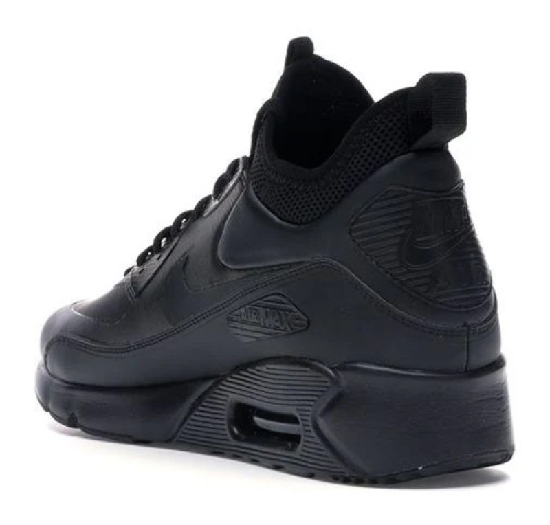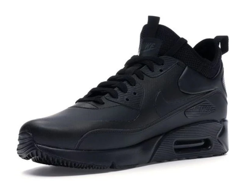 A monochromatic and stealthy winterized version of the Air Max 90. The shoe features a black upper with an internal bootie construction and a mid-cut height for increased warmth and water resistance during the colder, wetter months. The design is nearly all black with subtle hits of 'Anthracite' grey, and it is finished with a rugged rubber outsole tread for enhanced traction.