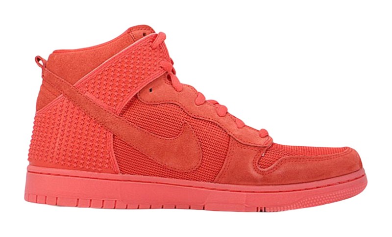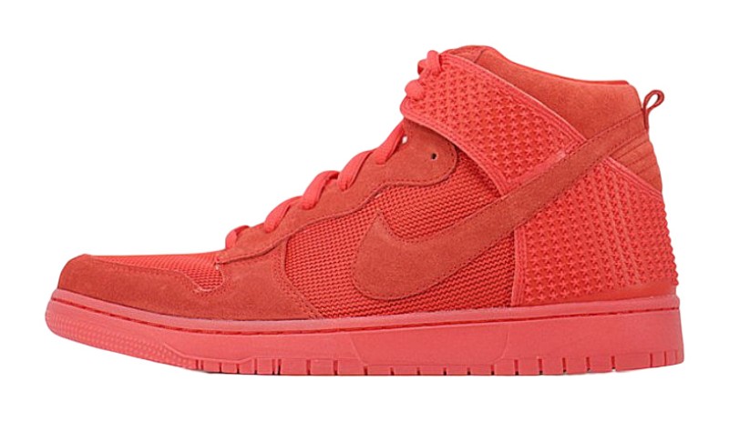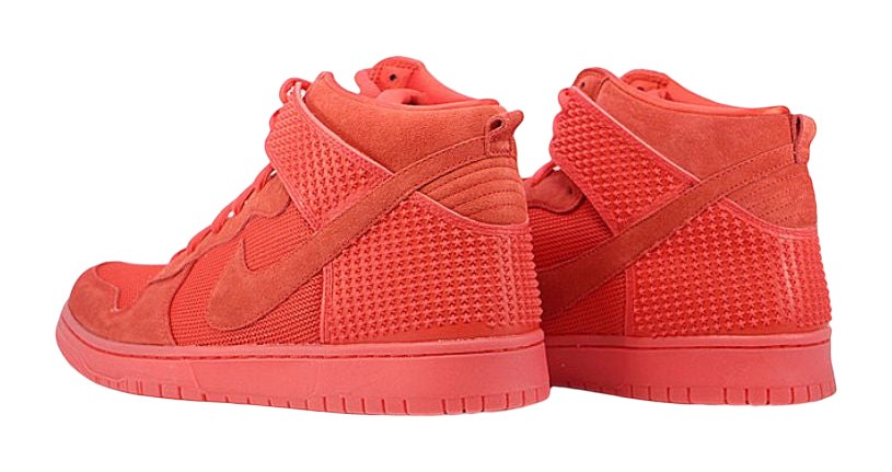 The shoe is a clear reference to the famously monochromatic "Red October" colorway of the Nike Air Yeezy 2. It features an all-red upper with various textures, including suede and mesh, and is part of the Dunk's "CMFT" (Comfort) line, meaning it includes enhanced cushioning like a Phylon midsole. It features a translucent outsole to complete the look.