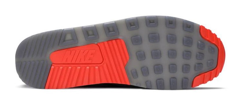 A collaborative release with European retailer size? to celebrate Air Max Day 2019. The shoe is inspired by the concept of "Zero Gravity," featuring a Dark Grey upper constructed with semi-transparent mesh and tonal suede overlays. Orange accents are placed on the vamp, tongue branding, and heel overlay. A unique feature is the upside-down branding on the tongue and heel, nodding to the space travel theme. It sits on a white foam midsole with a visible Air unit in the heel.