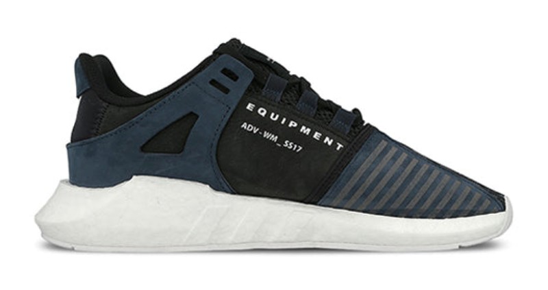 This men's and unisex sneaker is a collaboration with the Japanese streetwear brand White Mountaineering, featuring a multi-patterned, navy, grey, and black Primeknit upper with suede and wool accents. The lacing system is integrated with the signature Three-Stripes branding, which is also adorned with White Mountaineering branding. It has a chunky, responsive white Boost midsole and a durable rubber outsole.