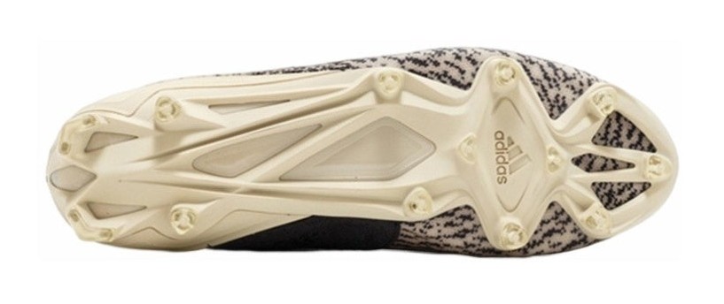 This model transforms the iconic look of the original Yeezy Boost 350 "Turtledove" into a functional football cleat. It features the signature light beige and black patterned Primeknit upper, but replaces the Boost sole with an aggressive high-traction cleated outsole. The outsole contains studs for grip on the field, often highlighted with Metallic Gold accents. This release was extremely limited and caused controversy at the time as the style was considered too unconventional for professional sports leagues.