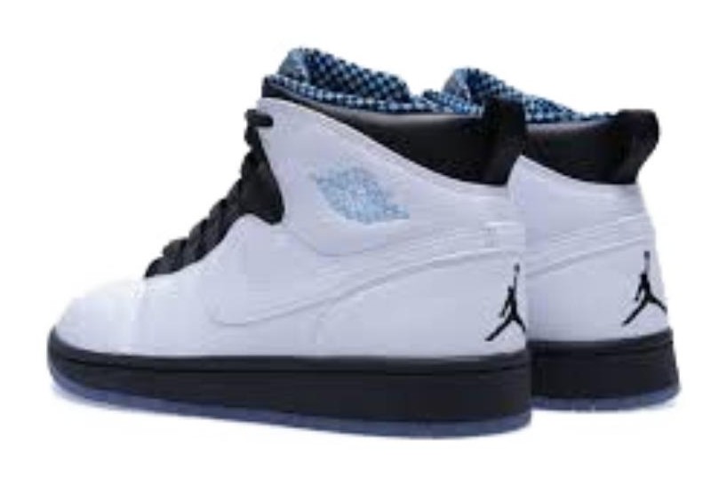 This shoe is a hybrid model that blends the silhouette of the Air Jordan 1 with key features from the Air Jordan 10, the model Michael Jordan wore upon his return to the NBA in 1995 (released in 1994, hence the '94 suffix). The colorway pays homage to Michael Jordan's alma mater, the University of North Carolina (UNC), using the classic Dark Powder Blue shade. The upper is constructed from White and Black leather, while the Dark Powder Blue color accents the shoe's lining, the outsole, and the stitched "Wings" logo on the collar. The most notable AJ10-inspired elements include the webbed eyelets/quick lace system and the checkerboard pattern found on the inner lining of the ankle collar.