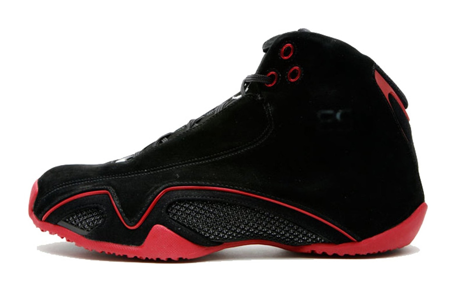 The Air Jordan 21 Retro 'Countdown Pack' is an homage to the classic "Bred" (Black and Red) color scheme, and was released as one half of a two-shoe package with the Air Jordan 2. The shoe features a premium Black suede upper, giving it a luxurious feel. Varsity Red provides contrast on the midsole, heel panel, and eyelets. The shoe is known for its technical features, including a visible Independent Podular Suspension (IPS) cushioning system in the midsole, allowing the wearer to swap between Zoom Air and Encapsulated Air units (though the retro may have sealed units). Unique design elements include a diamond quilted lining and a debossed '23' on the lateral collar, drawing inspiration from high-end automobiles.