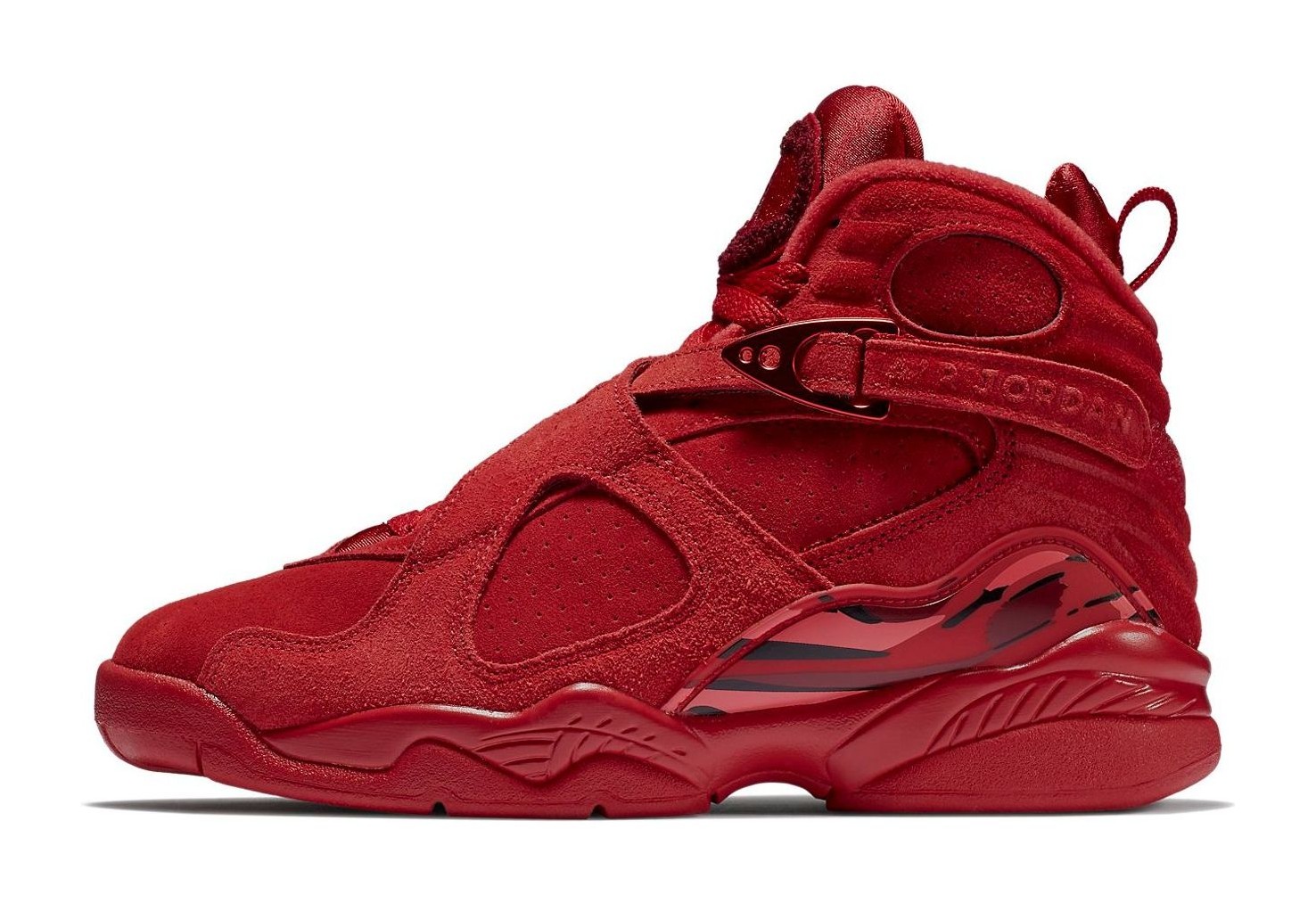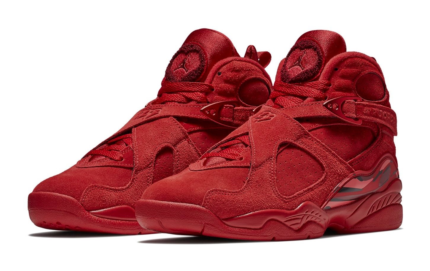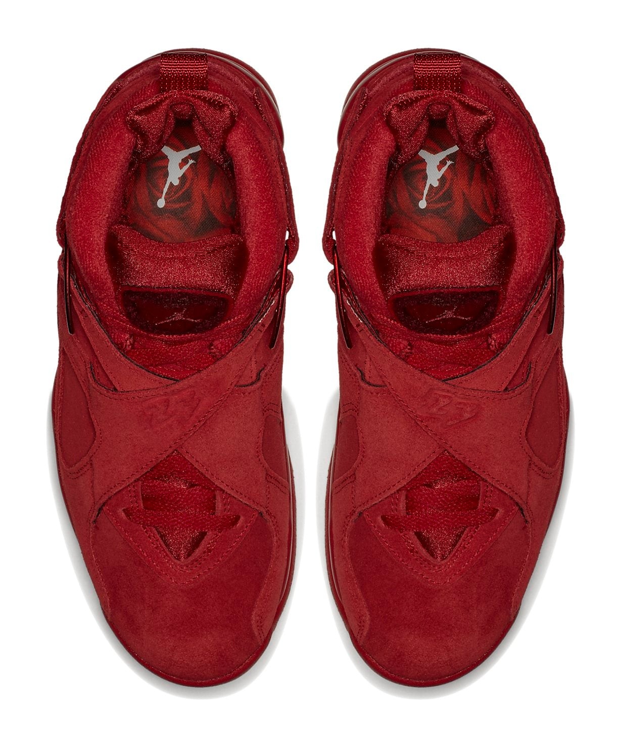 This women's exclusive release features a premium suede and nubuck leather upper dressed in various shades of red, including Gym Red, Ember Glow, and Team Red, to fit the Valentine's Day theme. Special details include rose graphics printed on the insoles and the phrases "Loves Me" and "Loves Me Not" printed on the inner sides of the signature cross-straps, paying tribute to the popular flower petal game. The shoe was packaged in special, themed box tissue paper.