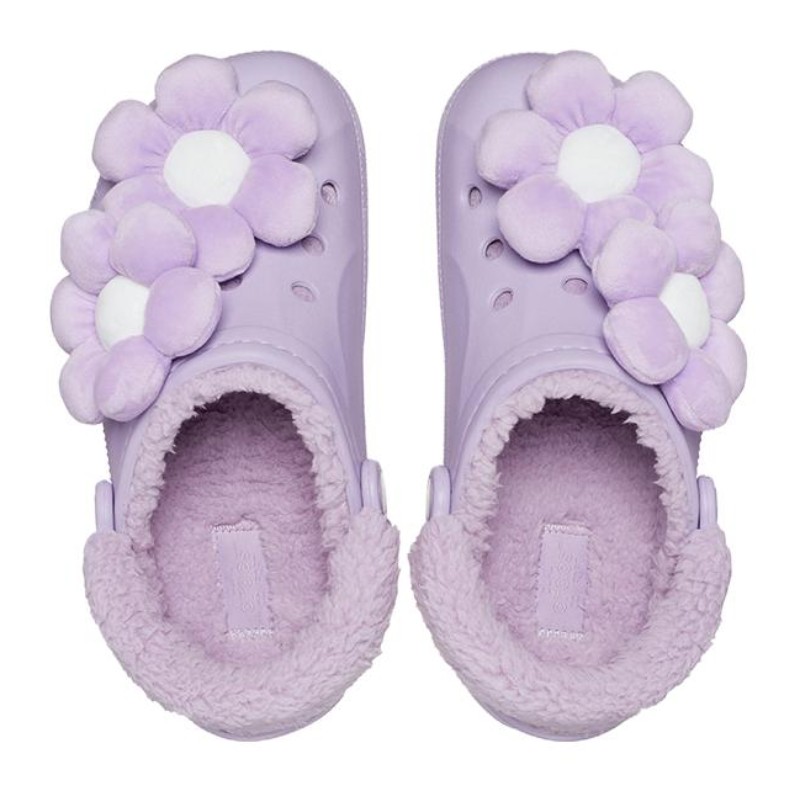 Crocs Baya Lined Fuzz Strap Clog "White Lila"