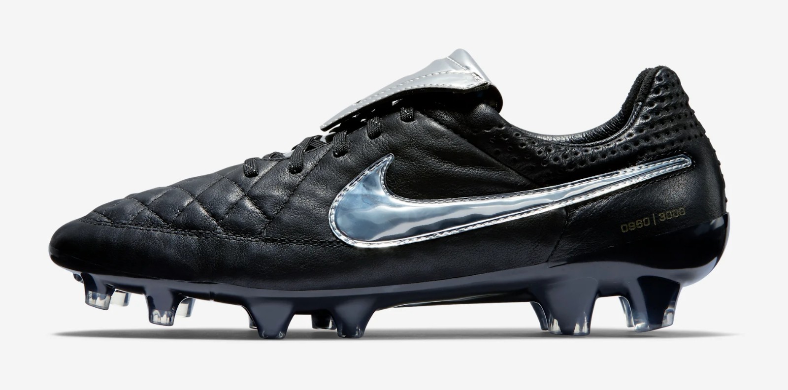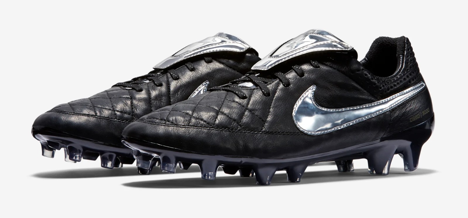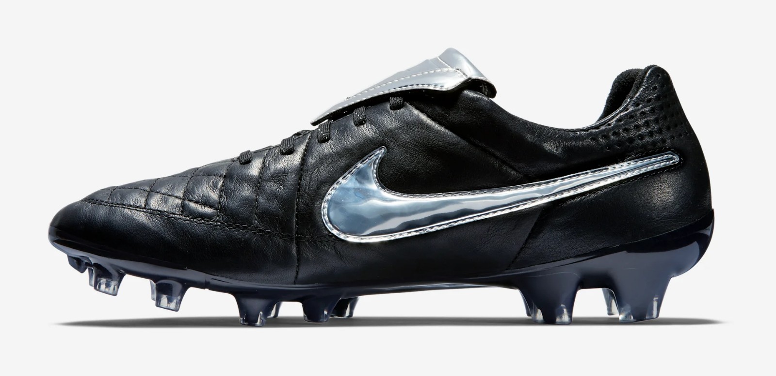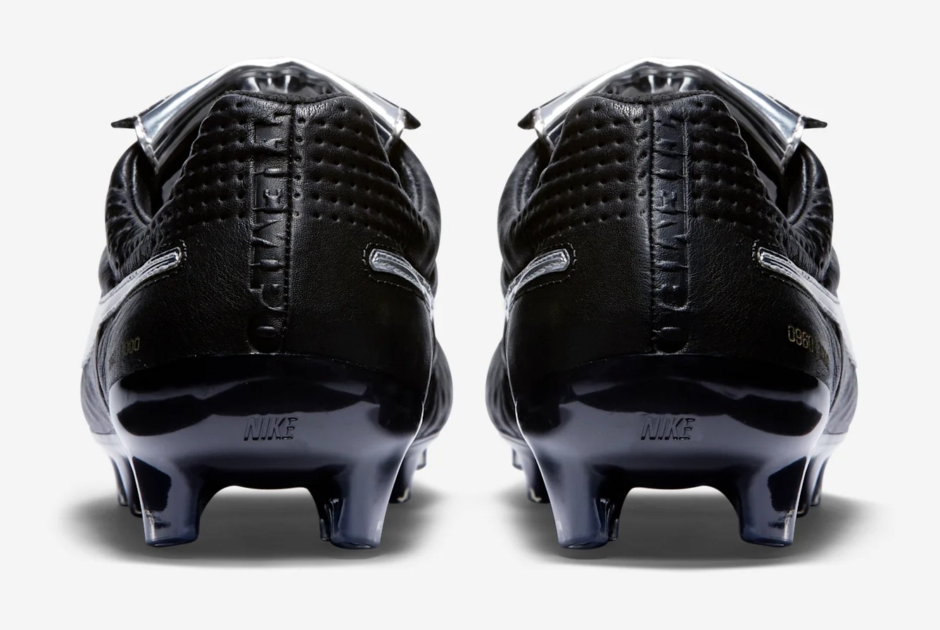 The Nike Tiempo Legend V Premium features a classic black K-leather upper accented by a striking metallic silver fold-over tongue and Swoosh. This special release specifically honors the AS Roma legend by reintroducing the iconic overlapping tongue, a functional detail Totti has long requested for his personal performance on the pitch.