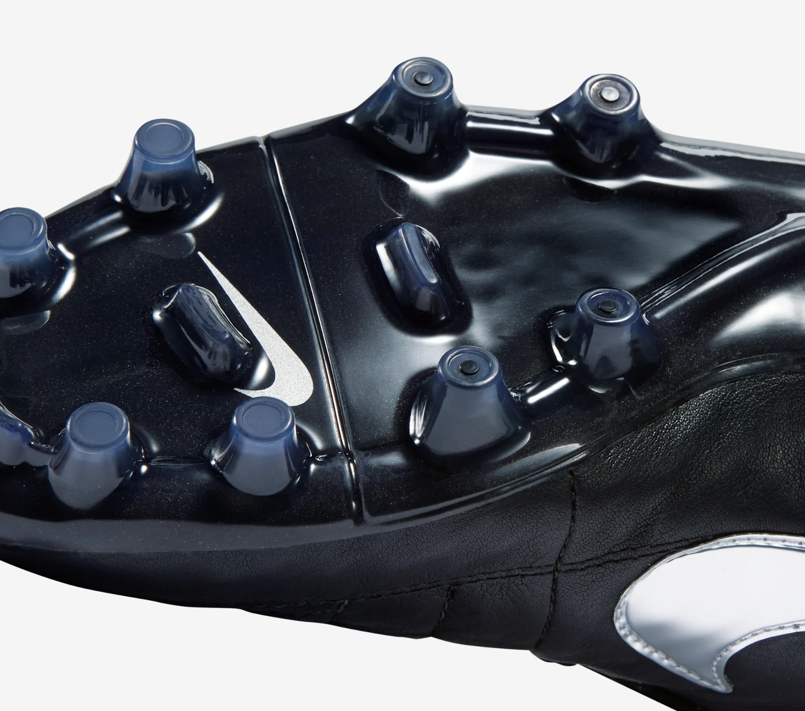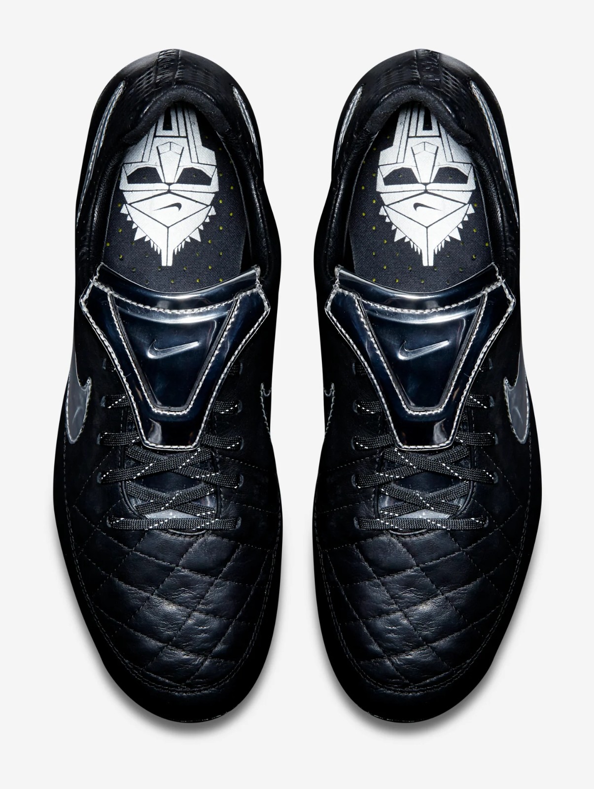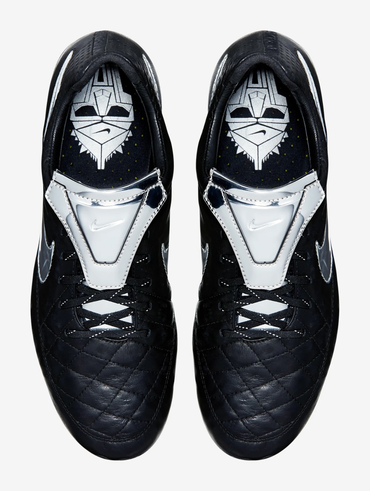 The Nike Tiempo Legend V Premium features a classic black K-leather upper accented by a striking metallic silver fold-over tongue and Swoosh. This special release specifically honors the AS Roma legend by reintroducing the iconic overlapping tongue, a functional detail Totti has long requested for his personal performance on the pitch.