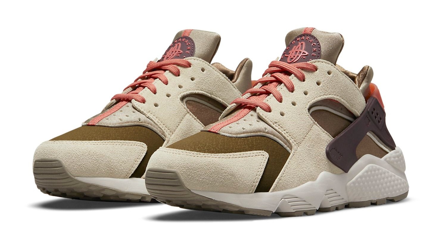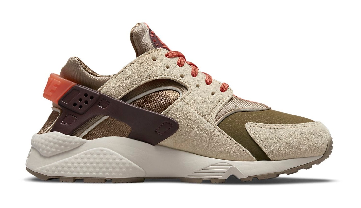 A women's-exclusive release built with premium, lifestyle-focused materials, featuring a fall-ready palette of earthy tones. The upper combines a deep Khaki neoprene base with sturdy light tan suede overlays. The shoe’s signature inner bootie and laces feature the namesake "Madder Root" (a muted pink/mauve), while the classic TPU heel cage and circular tongue logo are accented with "Burgundy Crush." The design sits atop a crisp white midsole with Air cushioning.