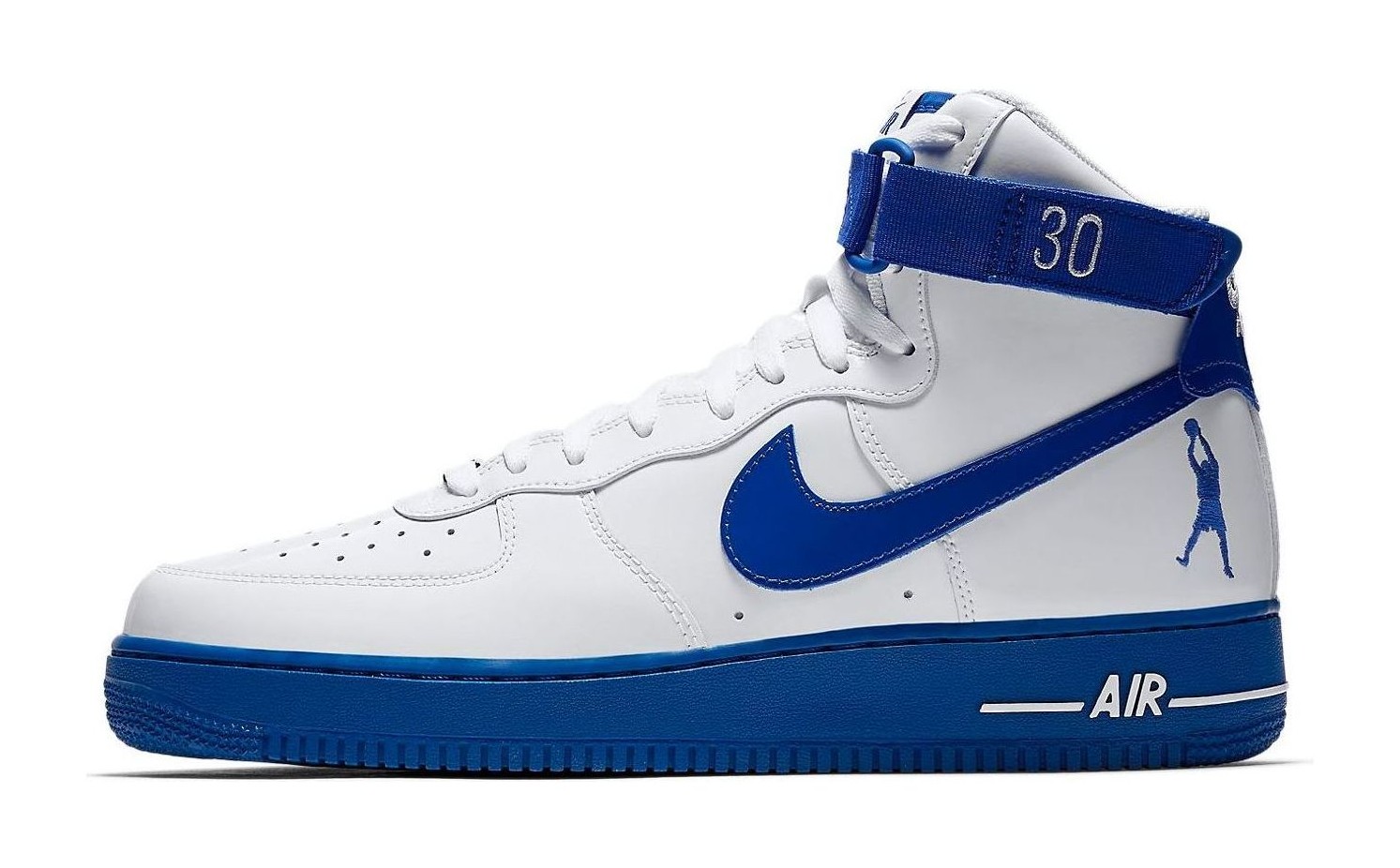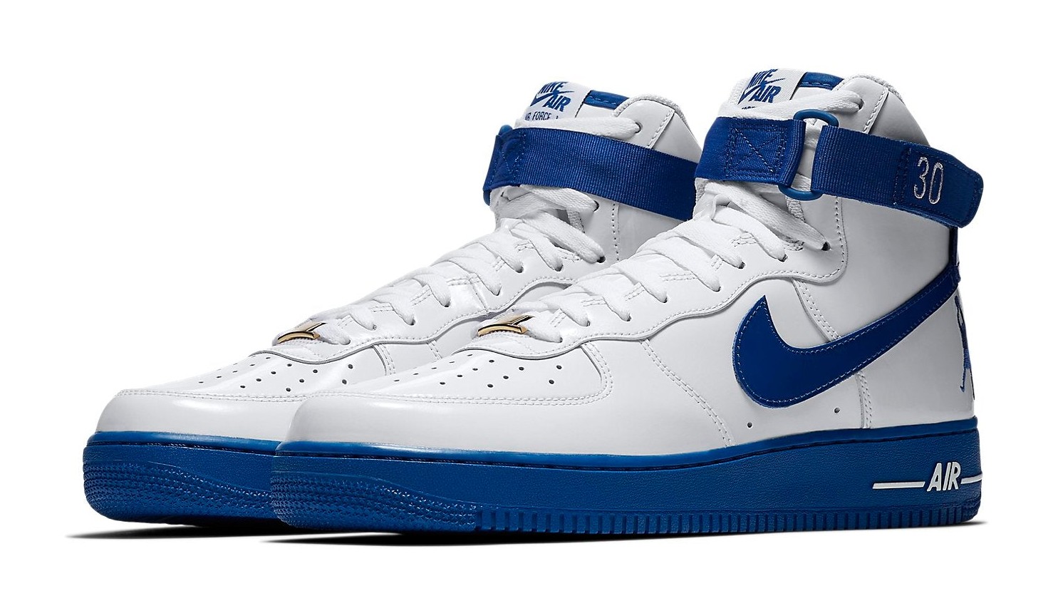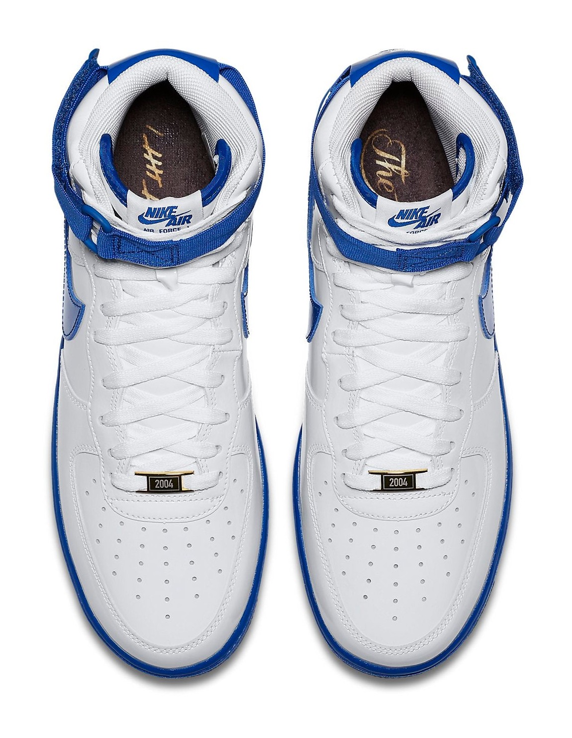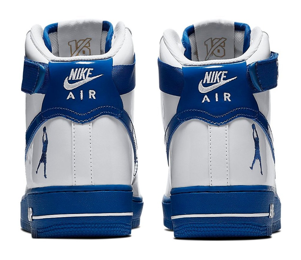 Part of the 2018 "Art of a Champion" collection celebrating NBA legends, this shoe pays tribute to Rasheed Wallace's performance in Game 4 of the 2004 NBA Finals. The sneaker features a classic high-top silhouette with a striking, all-white patent leather upper. Accents of 'Blue Jay' blue are featured on the rubber outsole, the iconic Swoosh, and the heel patch. Wallace's signature fadeaway silhouette logo is embroidered on the lateral heel. The shoe comes with two sets of ankle straps—one white and one blue—with the famous phrase "Ball Don't Lie" printed on the blue straps.