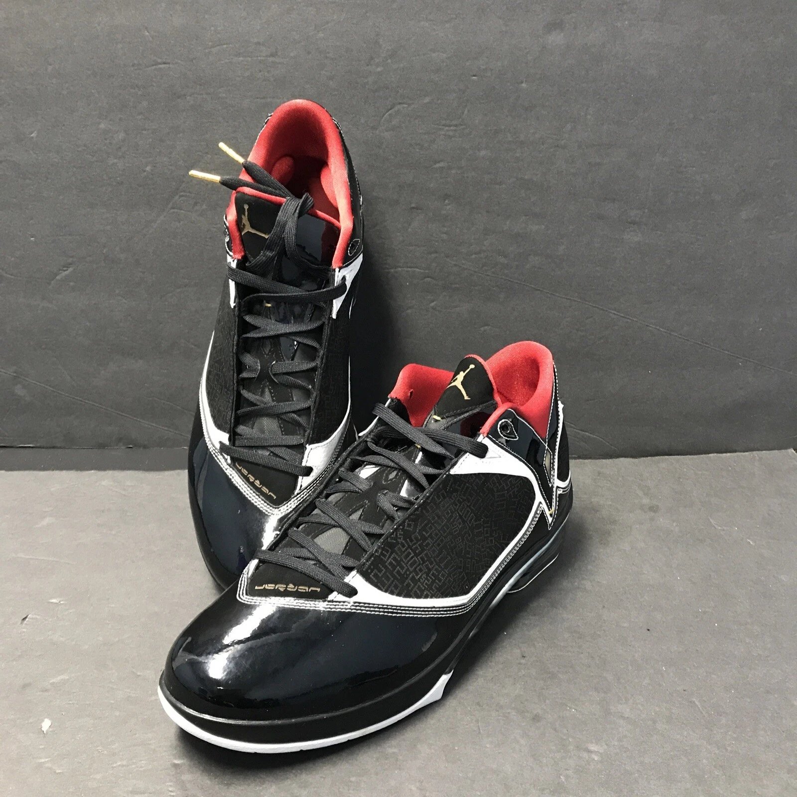 | Colorway | Black / White / Metallic Gold / Varsity Red |