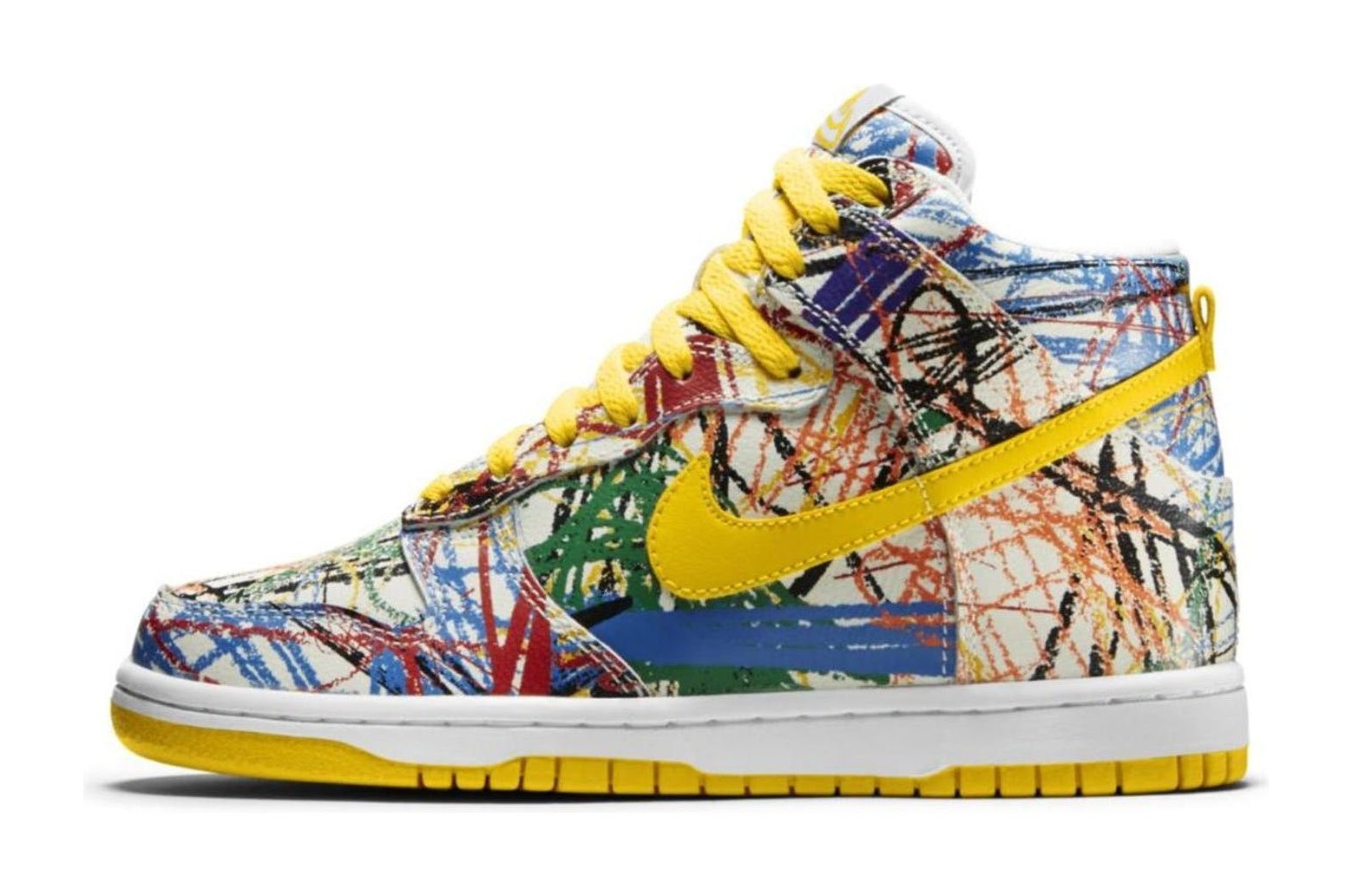The Nike Dunk High Premium QS (GS) 'Scribble' is a youth-exclusive sneaker designed to embody the creative spirit of a student's notebook and school supplies.