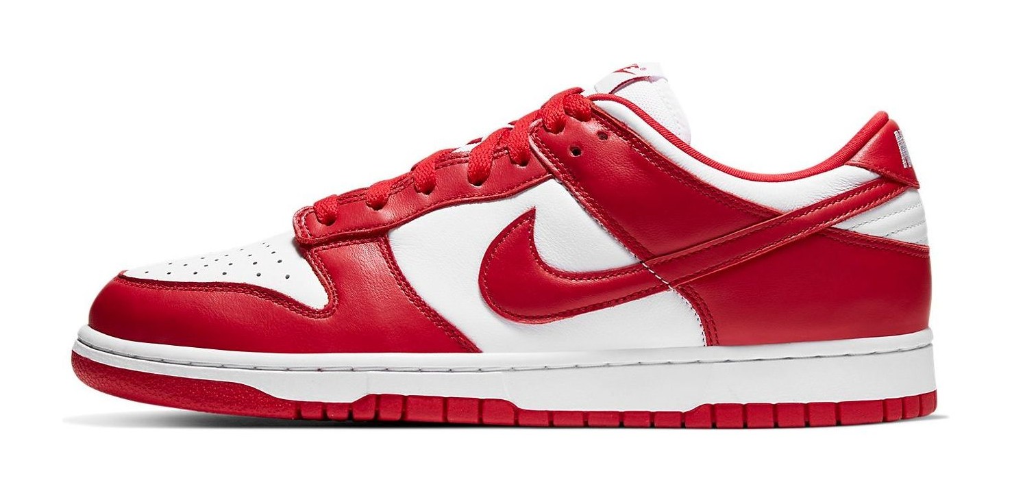 This is a retro release of one of the original "Be True To Your School" college colorways from 1985, specifically representing the colors of St. John's University. It features a simple two-tone design with a white leather base and University Red leather overlays.