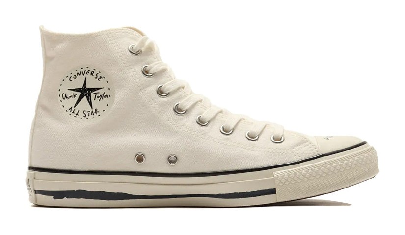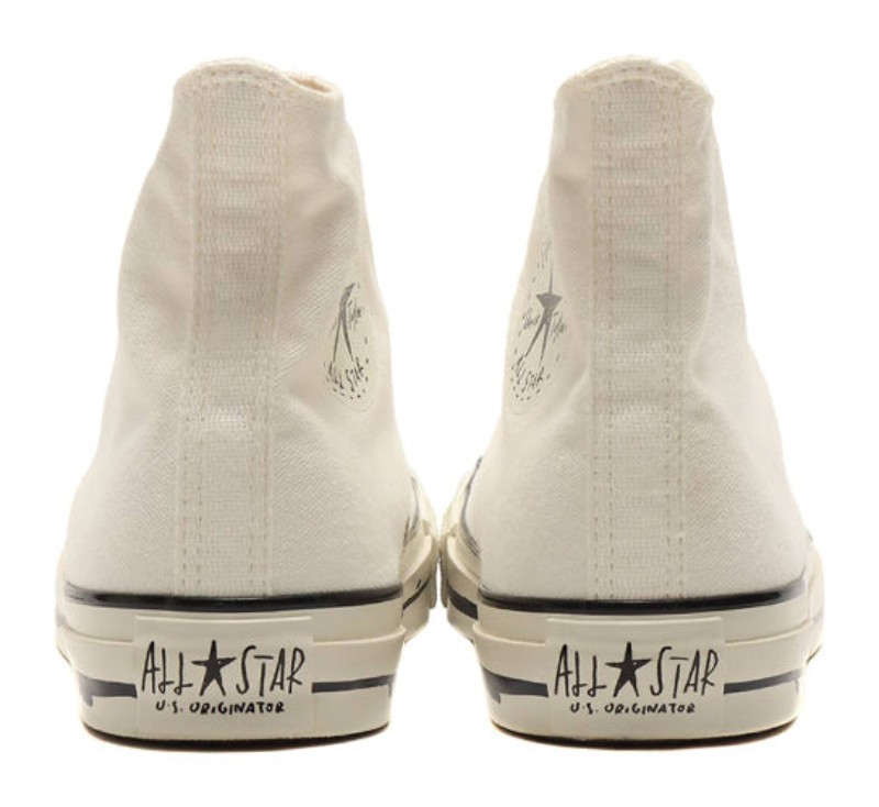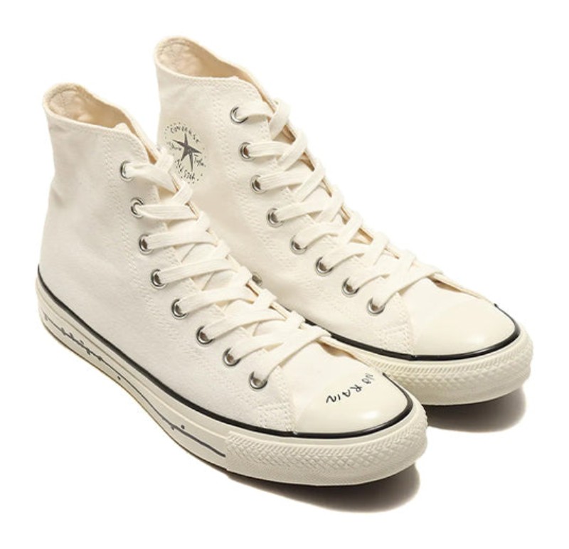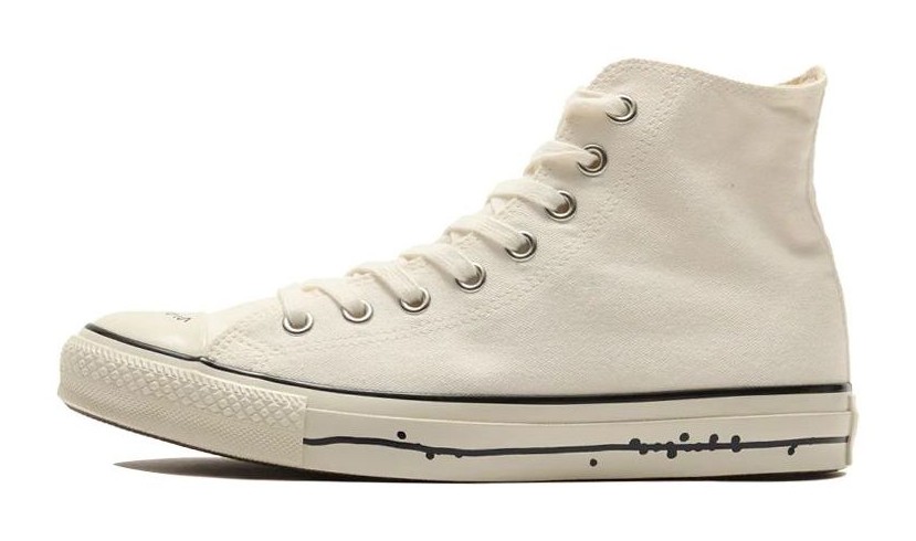 This is a special edition high-top sneaker based on the classic All Star model. The collaboration with Japanese illustrator Yu Nagaba is characterized by his minimalist, hand-drawn style, which is featured on the canvas upper. The design often includes unique, subtly drawn graphic elements that replace or complement the traditional Converse branding for a distinctive, artistic look.