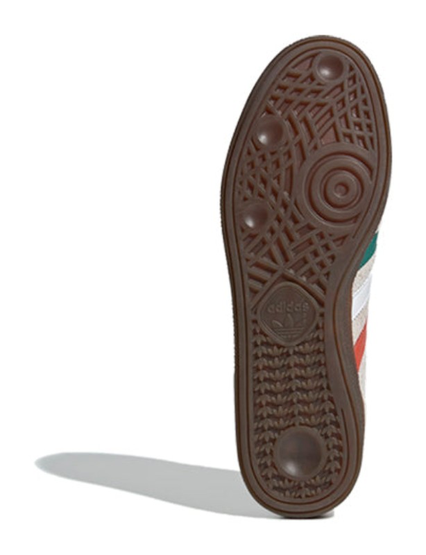 This model features a soft Clear Brown suede upper, giving it a rich, earthy look. The 3-Stripes, heel tab, and tongue label feature the colors orange, white and green. The shoe is finished with the classic rubber gum sole.