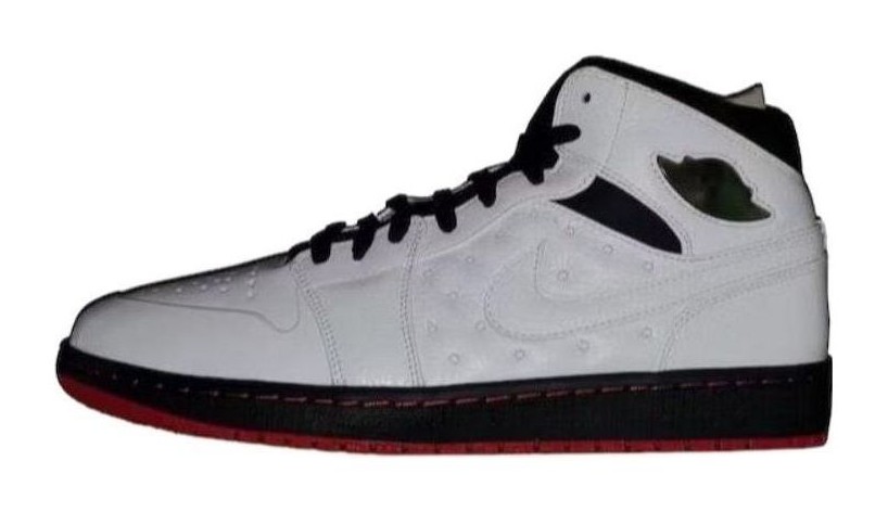 This is a hybrid sneaker that fuses the classic Air Jordan 1 silhouette with design elements from the Air Jordan 13 (released in 1997, hence the '97 suffix). The colorway is a tribute to the original "Black Toe" Air Jordan 1 and the iconic "He's Got Game" Air Jordan 13. The shoe features a traditional White and Black leather upper, mimicking the "Black Toe" blocking, with Gym Red accents on the collar and outsole. Key features adopted from the Air Jordan 13 include the stitched lines on the white mid-panel and heel and the holographic Jumpman logo that replaces the traditional "Wings" logo on the collar.