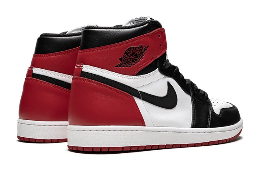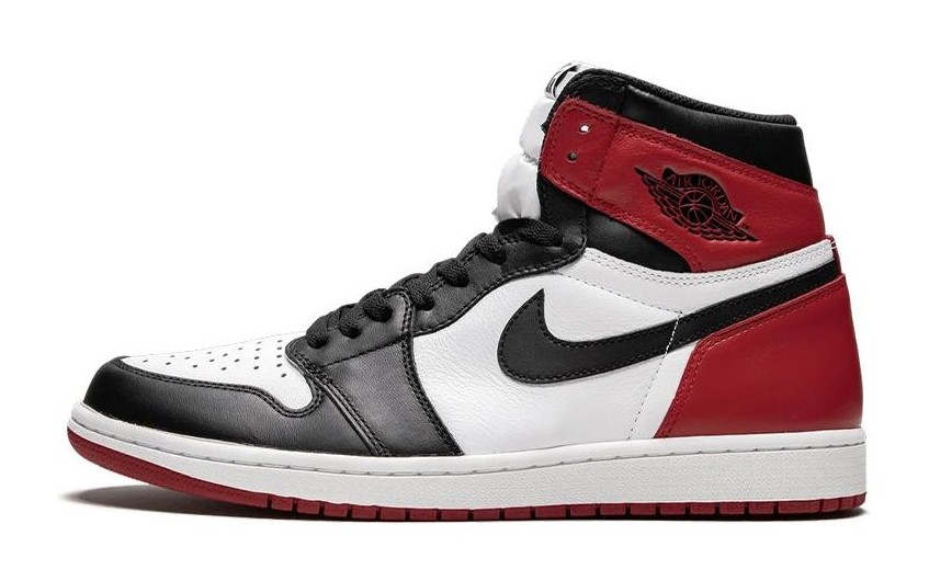 The "Black Toe" colorway is an original from 1985, instantly recognizable for its color blocking which is frequently featured in early images of Michael Jordan. It uses premium leather with a White base, Black overlays on the toe box (the "Black Toe"), eyestays, and Swoosh, and Varsity Red on the heel and ankle collar. This classic combination of Chicago Bulls colors is one of the most historically significant and sought-after colorways in the Air Jordan lineage.