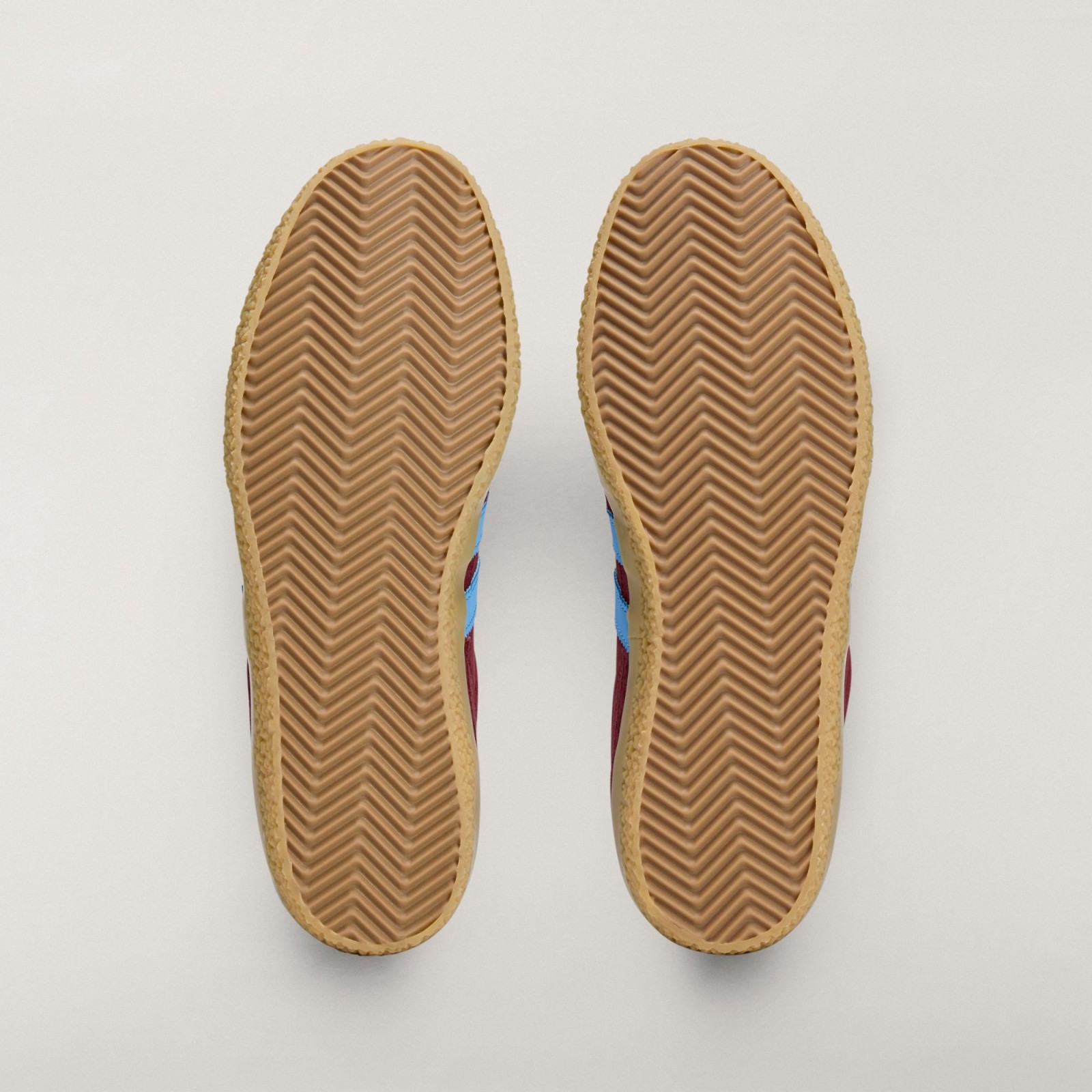This limited-edition sneaker, part of the Spezial F.C. collaboration, features a burgundy (Maroon) leather upper with light blue leather Three-Stripes and a heel patch. The ecotex tongue draws on the look of vintage adidas Rhodes and includes yellow branding. It is finished with a durable gum rubber outsole.