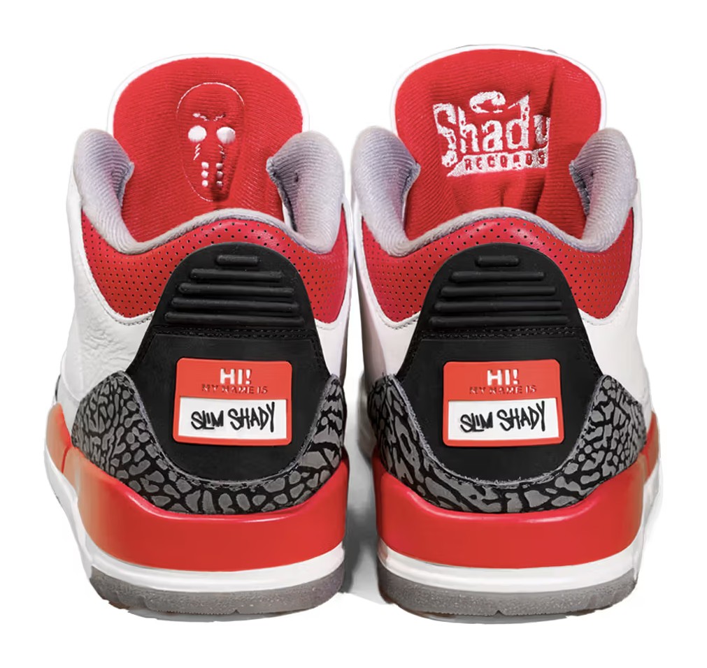 Eminem wore the "Slim Shady" Air Jordan 3 PE during his Super Bowl LVI halftime show performance in 2022.