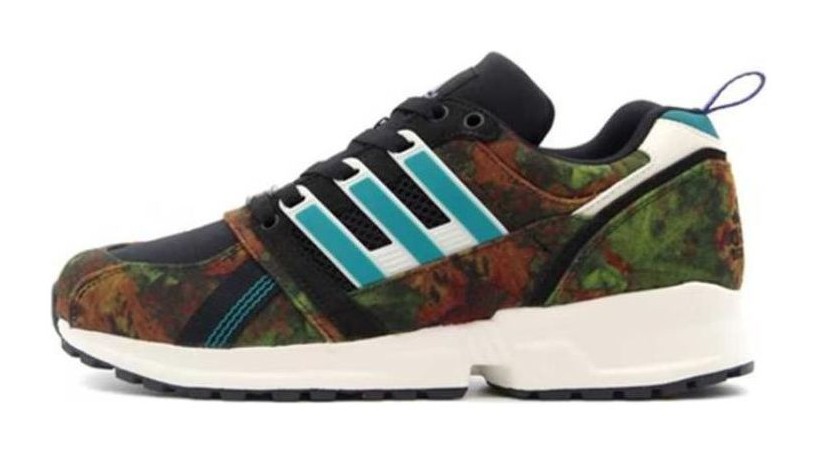 The adidas Equipment CSG 91 mita sneakers Consortium (GY5390) is a limited edition release that remixes the EQT aesthetic with a tactical, militaristic look. The shoe features a mixed-material upper, utilizing earthy tones and textures, including what appears to be a muted green, brown, and black pattern resembling Green Camo. A vintage feel is added by the slightly yellowed midsole in Cream White, grounding the rugged design and connecting it to the 90s heritage.