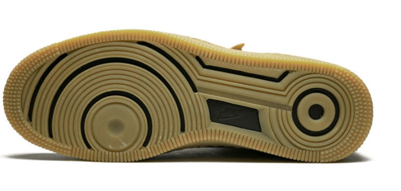 This is a high-top version of the slimmer "Downtown" Air Force 1 silhouette. The shoe is notable for its Full Gum Construction, meaning the upper, midsole, and outsole are all made entirely out of a Gum Light Brown rubberized, weather-resistant material. This special Quickstrike (QS) release gives the shoe a unique, monochromatic, boot-like appearance well-suited for winter weather, with black accents highlighting the sole's pivot points.