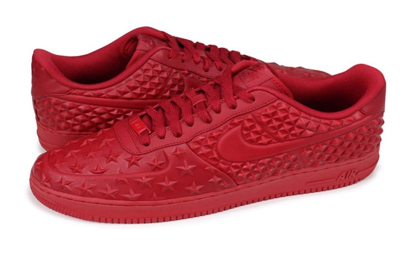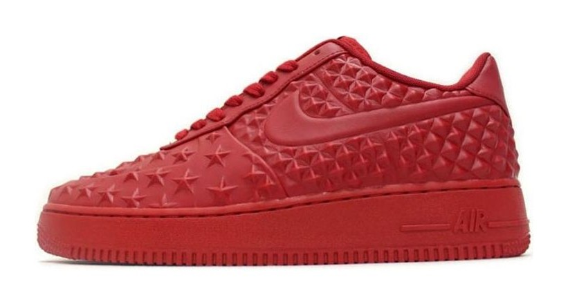 This sneaker features a Vac-Tech (VT) construction, which gives the all-red upper a seamless, molded look. It has a patriotic theme, with studded star detailing molded into the leather around the toe box and heel. The tonal gym red colorway is consistent across the upper, laces, branding, and sole. The shoe also includes standard Air-Sole cushioning in the midsole for comfort.