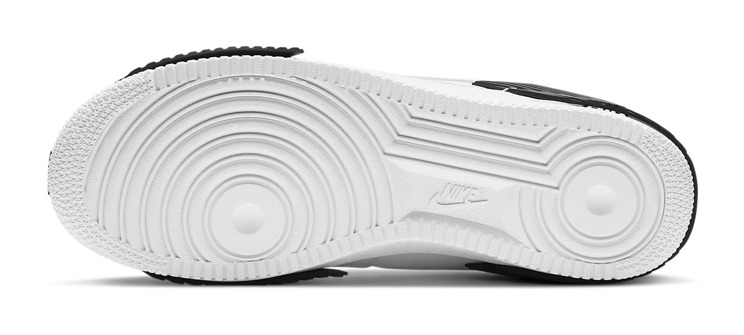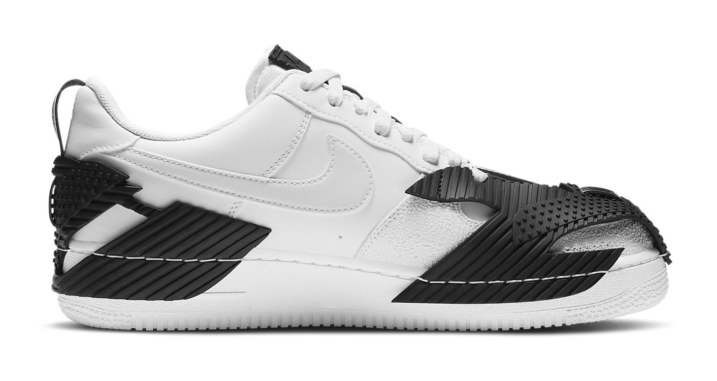 This sneaker is an upgraded version of the classic Air Force 1, featuring reinforced, hard-wearing plastic overlays over a white leather upper for added durability.