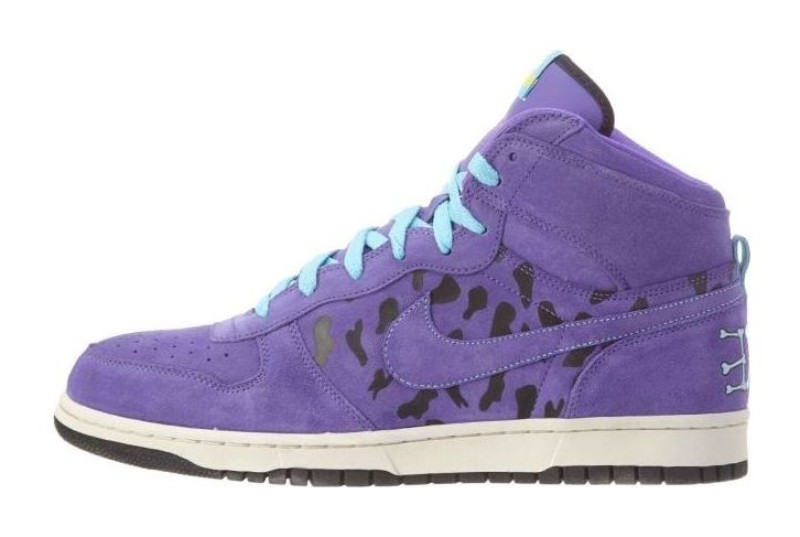 Inspired by the dinosaur "Dino" from The Flintstones, this shoe features a high-top design and a striking purple colorway. The upper is made of leather and is covered in a hairy, textured material to mimic dinosaur skin. This special quickstrike release has a bold, playful, and cartoon-themed aesthetic.