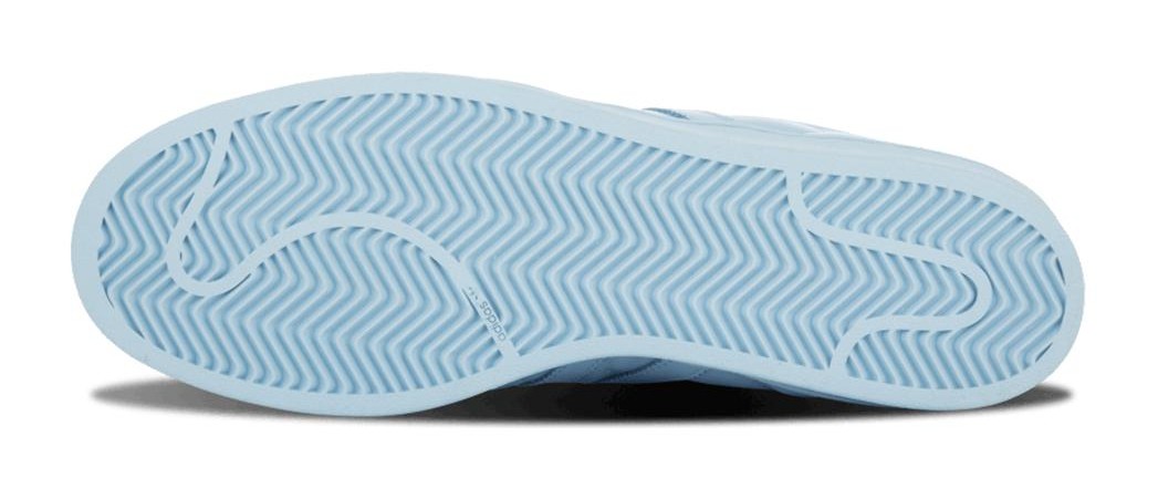 Part of the extensive "Supercolor" collection by Pharrell Williams, this sneaker features a monochromatic, clear sky blue design. The entire leather upper, laces, sole, and classic shell toe are all in the same vibrant color.