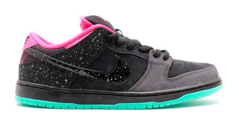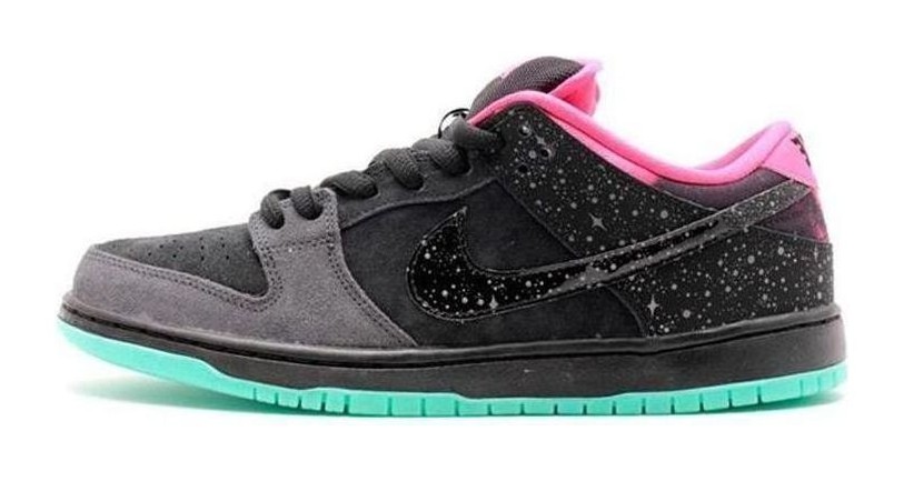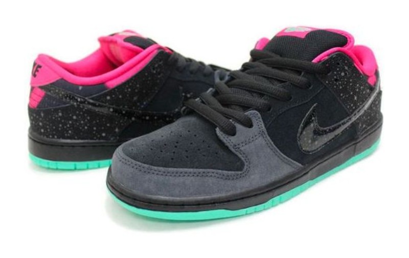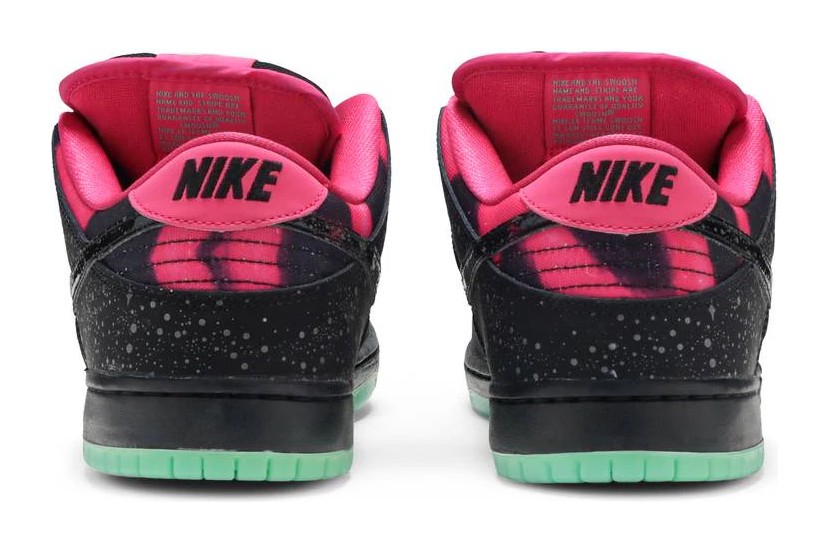 This sneaker was a collaboration with Premier Skate Shop in Grand Rapids, Michigan. The design is inspired by the Aurora Borealis (Northern Lights), featuring a black nubuck upper with reflective "starlight" detailing on the Swoosh and heel, a vibrant pink lining, and a glow-in-the-dark Crystal Mint (green glow) outsole.