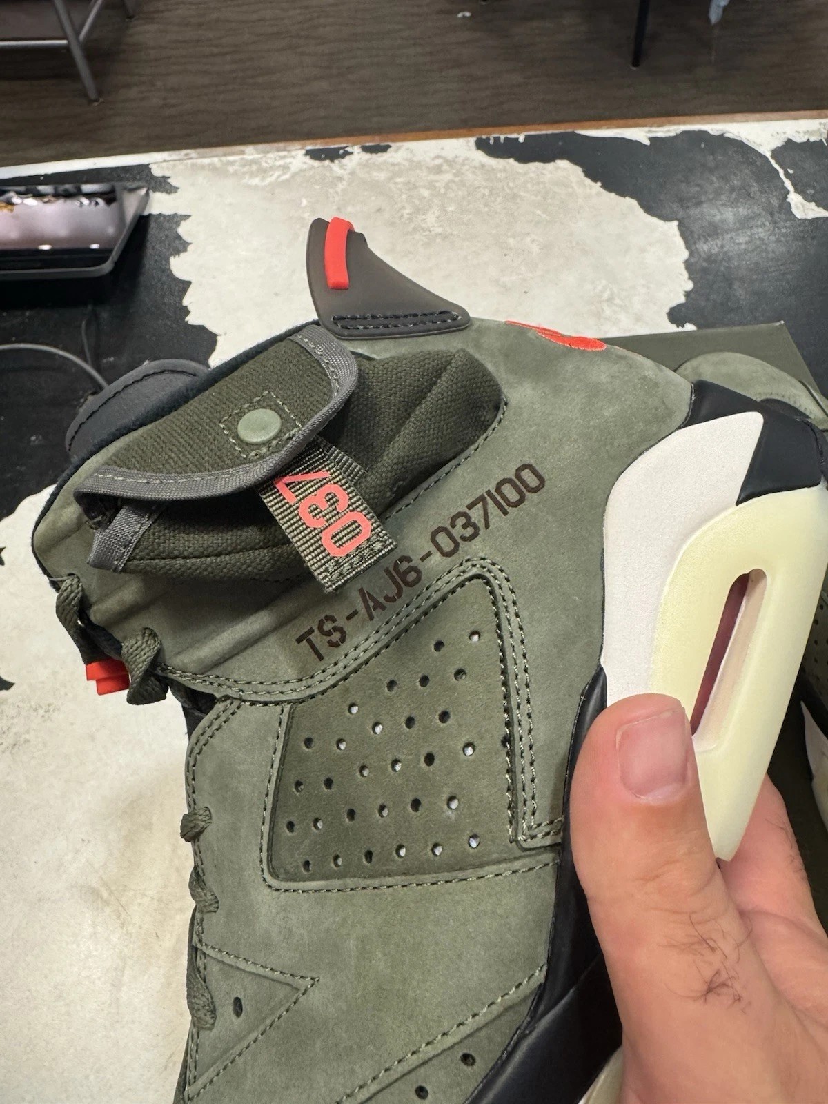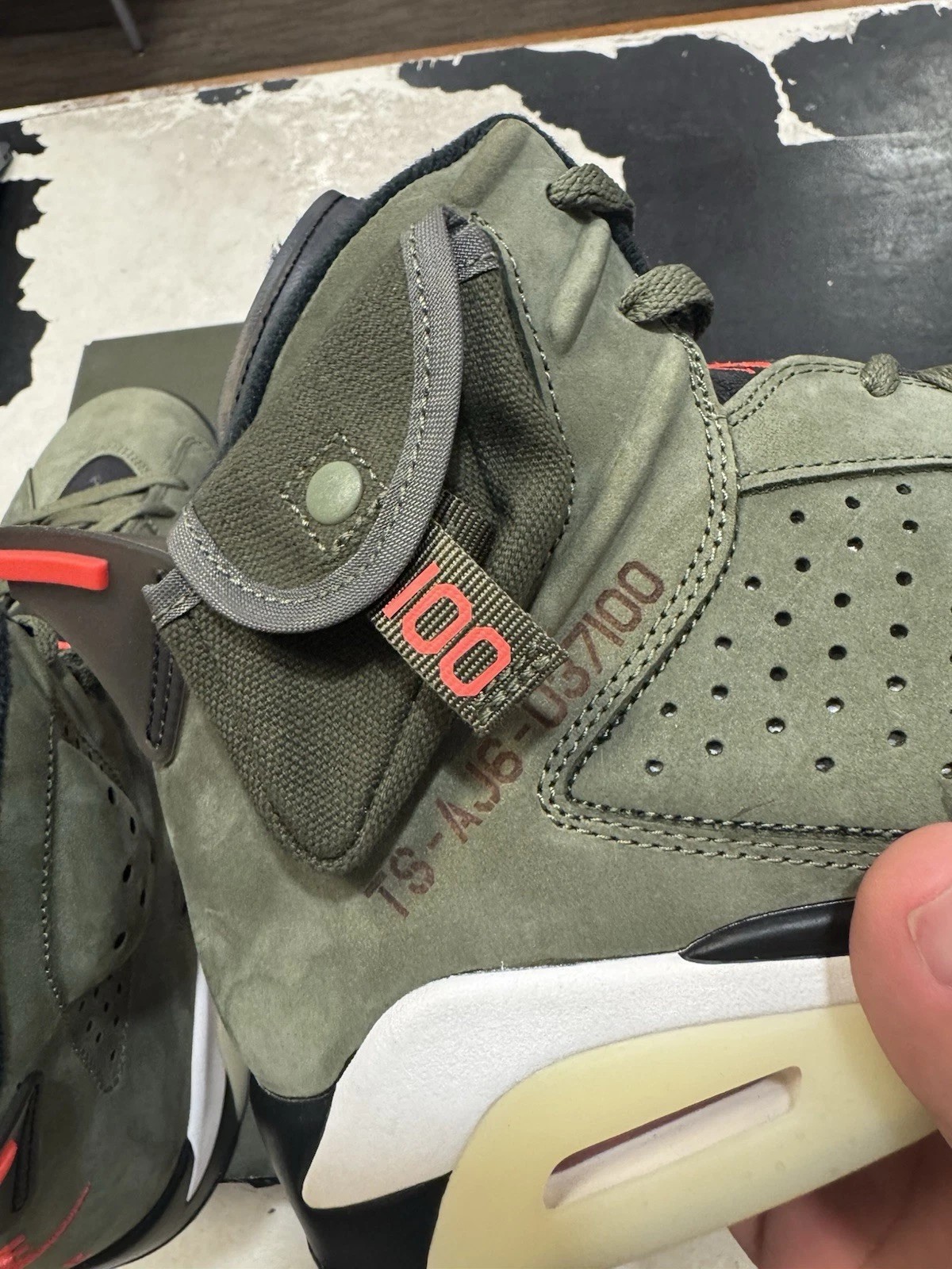 Image credits: https://www.goat.com/sneakers/travis-scott-x-air-jordan-6-retro-olive-friends-family-cn1084-200-ff